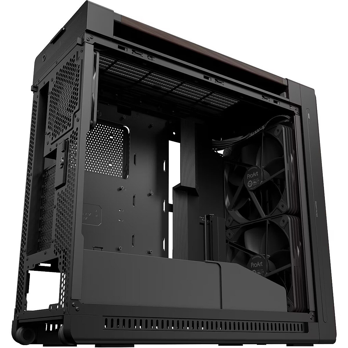Title - ASUS ProArt PA602 Wood Edition Modern Black - Metal Panel Midi Tower Black, Wood