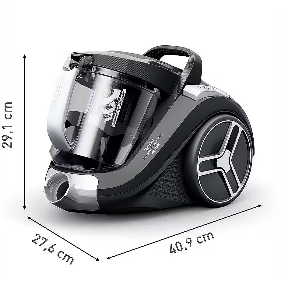 MediumDescription EN - The most powerful XXL bagless vacuum cleaner by Tefal The Tefal Compact Power XXL Bagless Vacuum Cleaner offers excellent cleaning results with a 900 W max. low consumption motor* in a compact design. Its advanced 3-level filtration captures over 99.98% of dust particles