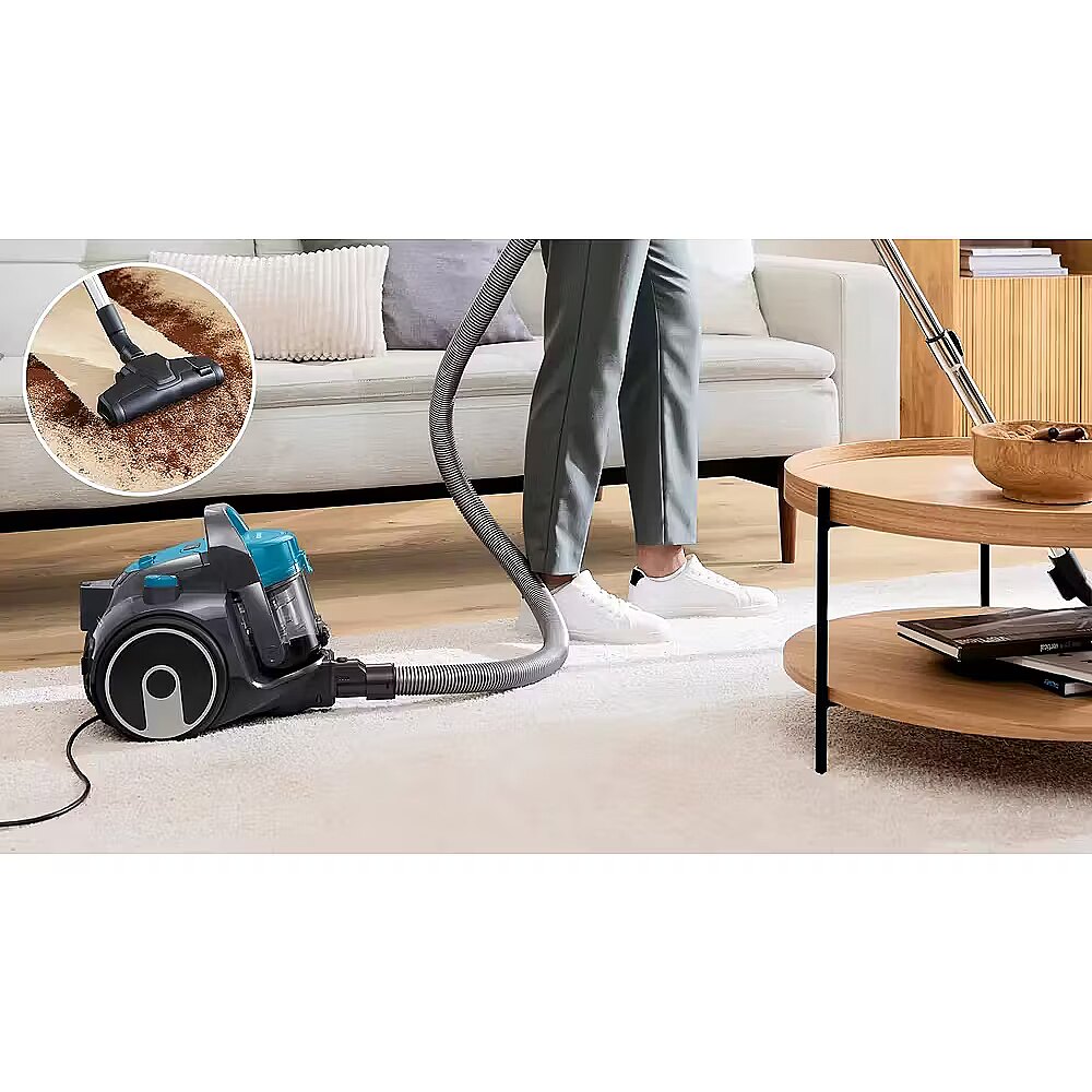 LongSummaryDescription - Bosch Serie 2 BGS05X240. Maximum input power: 700 W. Type: Cylinder vacuum, Cleaning type: Dry, Dust container type: Bagless, Dust capacity: 1.5 L. Vacuum air filtering: EPA, Dirt separating method: Filtering, Noise level: 78 dB. Product colour: Turquoise