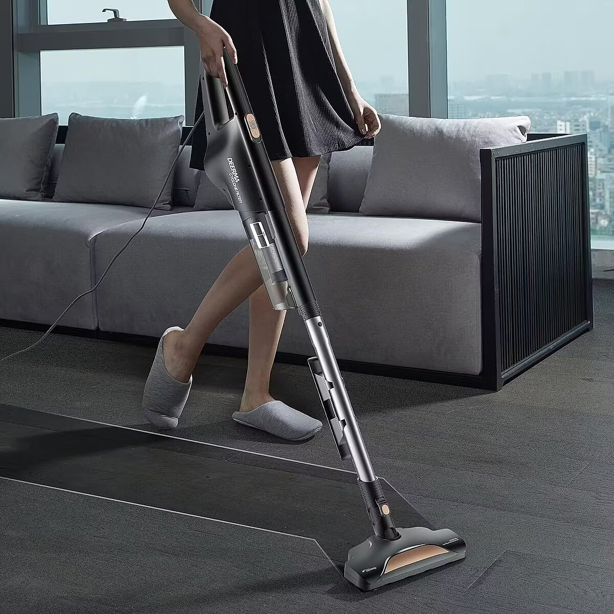 description_en - Soon every corner of your home will be sparkling clean. The Deerma DX600 upright vacuum cleaner operates at 600 Watts and offers improved cyclonic technology to eliminate dust and waste in a flash. The included interchangeable brushes will also make cleaning easier for you. The 4 stage filtration effectively removes dirt and allergens. Lightweight and handy, the long 4.5-meter cord makes the Deerma DX600 suitable for both upright and handheld vacuum cleaning.Dust, pollen, dust mites, hair and other debris not only pollute our homes, but also often trigger allergies. The DX600 can help you solve these problems! Thanks to improved cyclonic technology, the suction power is increased up to 15,000 Pa. In addition, a steel mesh with 12,999 0.25 mm diameter holes prevents dust from clogging the filter for reliable performance.Did you know that when you buy the DX600, you get 2 practical devices in one? The product can be used as a normal upright vacuum cleaner and a small handheld vacuum cleaner. This makes it ideal not only for vacuuming your floors, but also for cleaning furniture, curtains and even your car. The DX600 is also extremely lightweight so it's easy to pick up. As a handheld it weighs only 1.4 kg and an upright 2 kg. What's more, its ergonomic non-slip handle makes it easy to manoeuvre.