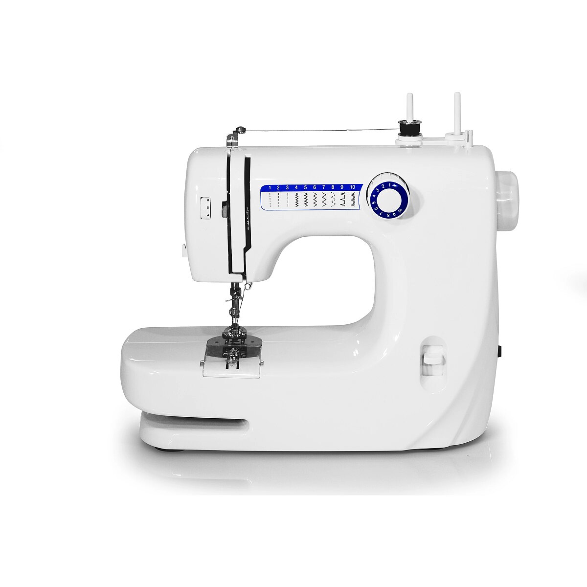 Technical details > Other features - 10 Build in patterns; Wire cutter; Twin needle; Bobbin rewind function; Free arm; Sew forward and reverse.