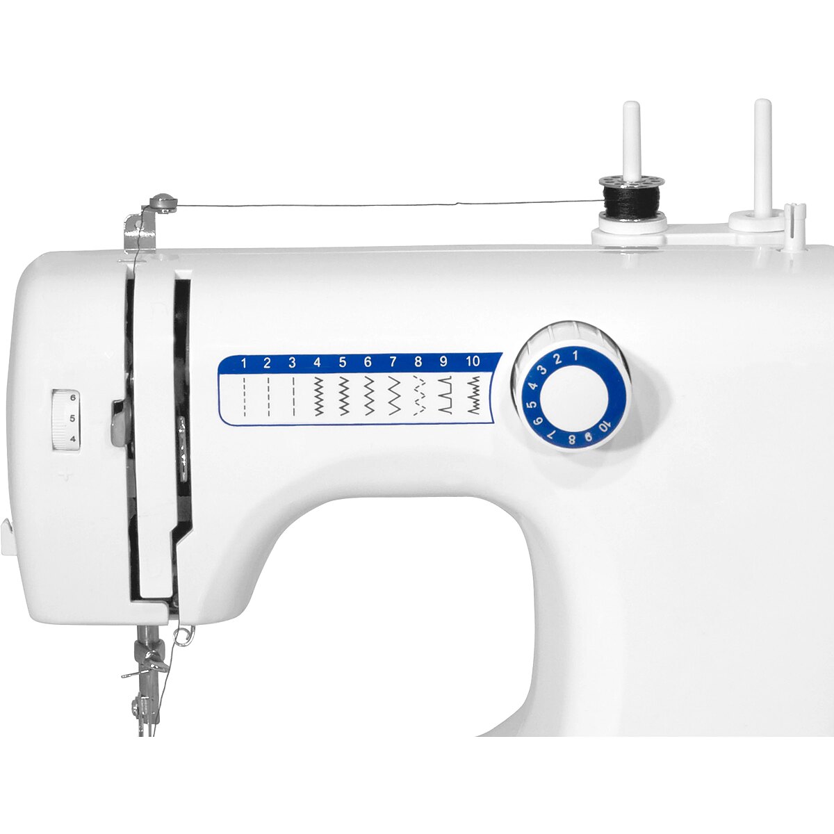 LongDesc - SM-6000 Sewing Machine – NovicesThe SM-6000 is an entry level sewing machine with 10 built-in patterns. Convenient to use, with every function you can expect from a basic sewing machine. Sew trousers and sleeves without effort with the free arm. Suitable for children over 12 years of age. Easy to useThe Sewing Machine is very simple to operate, so is suitable for novices. Select one of the 10 built-in patterns with the rotary so you can easily sew a straight or a zigzag stitch. With its easy to thread system you can start sewing swiftly. Simple but completeEven though the Sewing Machine is a basic sewing machine, it has all the functions you would like. You can easily wind a bobbin with the bobbin rewind function. With its double needle you can easily stitch two stitches next to each other so you don’t have to sew twice. The machine also has an easy to operate button for backwards sewing.Also suitable for young novicesWith its lightweight and easy operable functions the sewing machine is suited for starters and children over 12 years. Thanks to the small foot pedal it is easy for everybody to operate the sewing machine.offers you 24 months warranty on all productsWhat’s in the box:Sewing machine, adapter, twin needle, threader, 4 bobbins, pedalReasons to choose the sewing machine:Always the desired stitch with 10 built-in patternsComplete with twin needle, wire cutter and built-in lightEasy to operate thanks to the small pedalSimply sew trousers and sleeves with the free armPerfect entry level machine for adults and older children