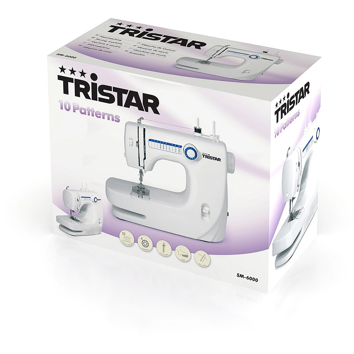 LongSummaryDescription - Tristar SM-6000 Sewing machine. Product colour: White, Type: Automatic sewing machine, Sewing machine functions: Sewing. Power supply type: Electric, Power: 9 W, AC input voltage: 220 - 240 V