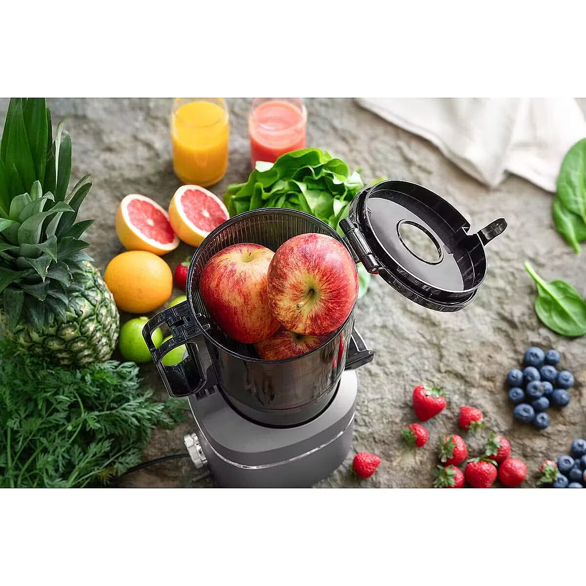 Description - Wyciskarka wolnoobrotowa Juicy LO7120 Otwór XXL może pomieścić całe owoce