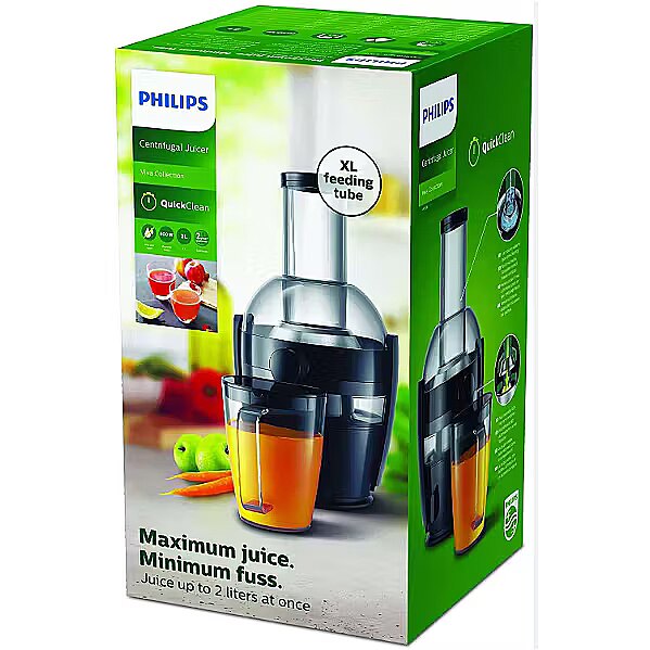 LongDesc - Make up to 2 l of juice in one go and clean up withMaximum juice. minimum fuss.This Philips juicer extracts even more juice from your fruit and vegetables. Cleaning can be done within 1 minute thanks to the revolutionary "QuickClean" technology. Treat yourself with the joy of healthy homemade juice every day!