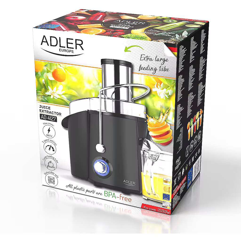 Name - Adler | Juicer | AD 4127 | Type Juicer maker | Matt Black | 1000 W | Number of speeds 2