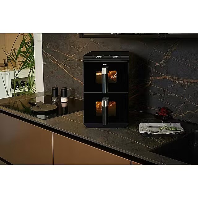 Dane techniczne: Funkcje - możliwość osobnego ustawienia czasu pracy i temperatury dla każdego z koszy