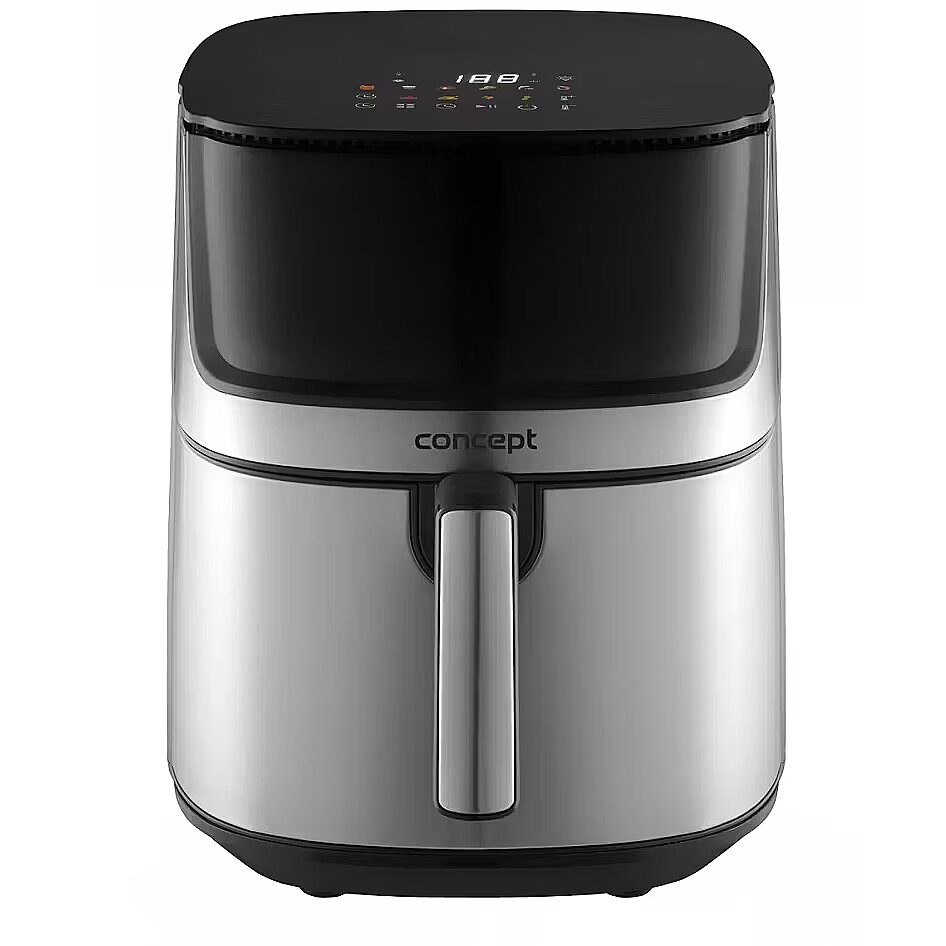 Okienko z wewnętrznym oświetleniem umożliwia wygodne monitorowanie przygotowywania potraw bez konieczności otwierania frytkownicy, co oszczędza czas, energię i zapobiega utracie gorącego powietrza.