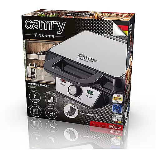 Name - Camry | Waffle Maker | CR 3046 | 1600 W | Number of pastry 2 | Belgium | Black/Stainless Steel