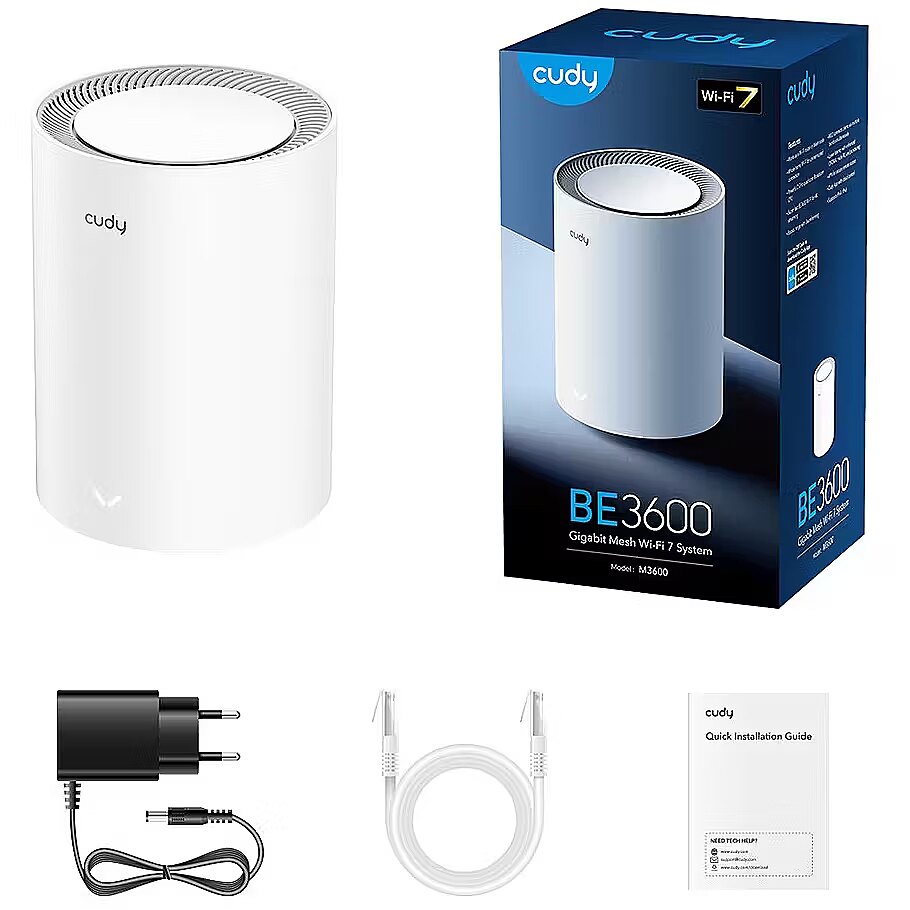 Description - BE3600 Gigabit Mesh Wi-Fi 7 System Dwuzakresowy router WiFi 7 o łącznej prędkości 3,6 Gb/s i trzech portach gigabitowych, przeznaczony do dużych domów z gigabitowym dostępem do Internetu. 4-strumieniowe dwuzakresowe Wi-Fi 7 2882 Mbps + 688 Mbps Wi-Fi 3× Gigabit Ethernet Ports Do 200 podłączonych urządzeń Cudy Mesh, VPN Server and Client Cudy App, Cloud Control