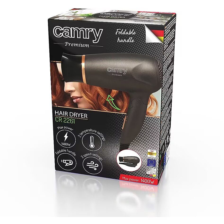 productName - Camry CR 2261 hair dryer Metallic grey, Gold 1400 W