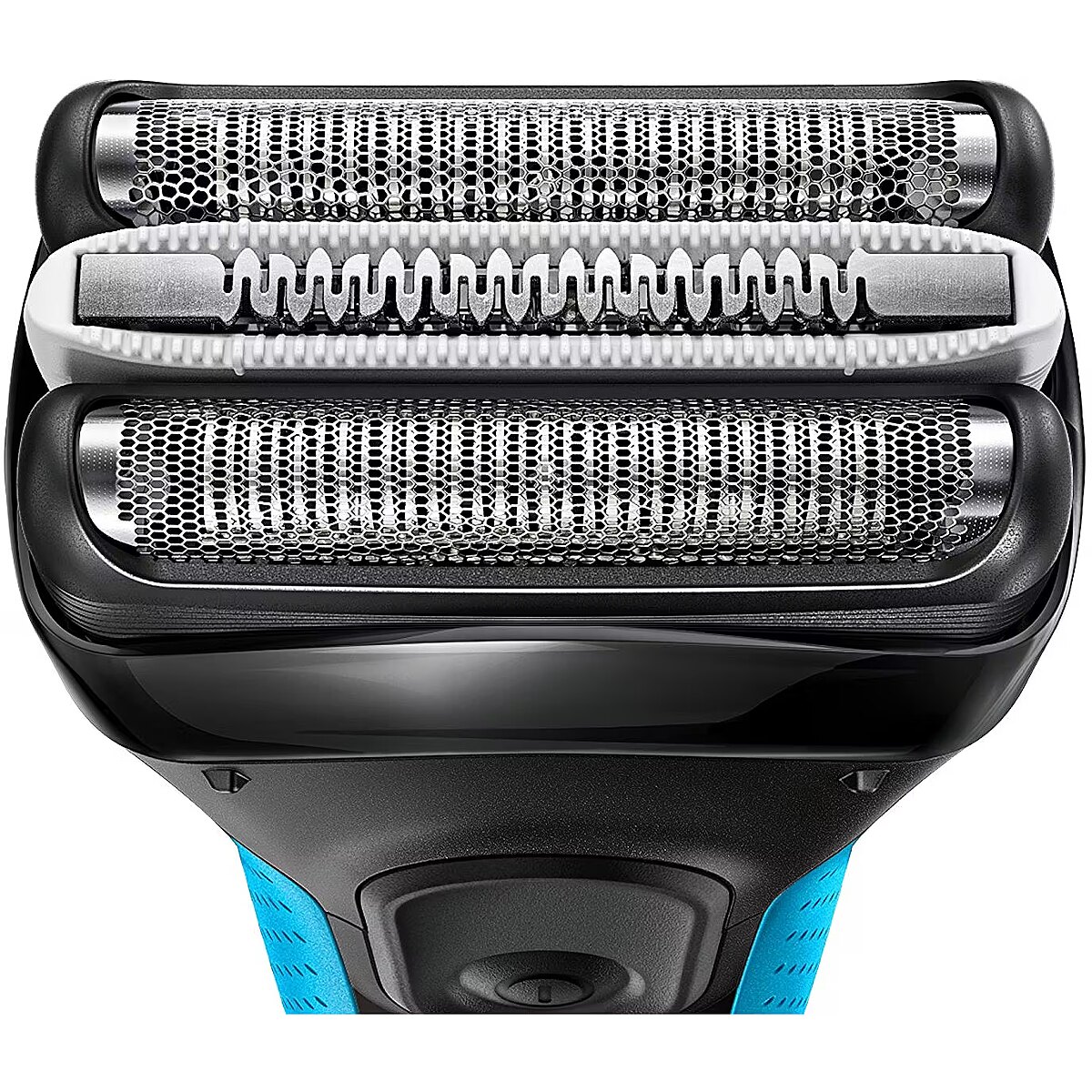 LongDesc - MicroComb TechnologyCatches and feeds more hair into the cutting parts offering outstanding performance on 3-day beards and great skin comfort.Flexible cutting elementsAdapt to the skin's contours cutting short and long hairs with every stroke.Triple action cutting systemTwin foils and an integrated middle trimmer shave progressively closer.Optimized cutting elementsBraun's proprietary cutting elements, optimized to give outstanding closeness and skin comfortMiddle TrimmerLifts and cuts flat-lying hair
