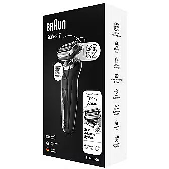 Technical_details - Type: Razor Color: Black EAN: 4210201433804 Manufacturer No.: 71-N1000s Series: Series 7 Power supply: built-in rechargeable battery : Yes : 100 - 240V : Li-Ion : 50 minutes : 1 hour : 5 minutes Use: shaving Application: Wet, Dry Shaving/Cutting System: 3 flexible shaving elements Shaving head: Movable shaving head, contour adjustment : 360° flex head Display: LED display (battery status, cleaning status, replacement indicator, travel lock status) Cleaning: Fully washable Storage: travel case Notes: Non-slip handle for safe handling Feature: AutoSense technology, Wet&Dry technology Accessories: 1x travel case, 1x power adapter with automatic adjustment to 100V to 240V, 1x cleaning brush