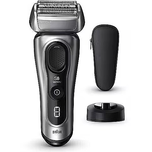 LongDesc - Superior close & gentle even on dense beardsRedesigned to upgrade your shave with superior closeness, skin comfort & precision.Ultimate precision even on longer hairsProTrimmer for maximum cutting efficiency even on sideburns, moustache and under nose.Efficient even on dense beards10,000 sonic vibrations & AutoSense technology shave the densest beards in fewer strokes.Closeness even in tricky areasUltra adaptive 40° shaving head adapts & reaches even the hardest-to-shave areas under the chin and neck.Built to last, every day, for years​100% Made in Germany and 100% waterproof. The Series 8 can be used dry, wet, or with foam.​Shave up to 4 weeks without rechargingThe powerful Li-Ion battery gives you up to 60 minutes of shaving time.​