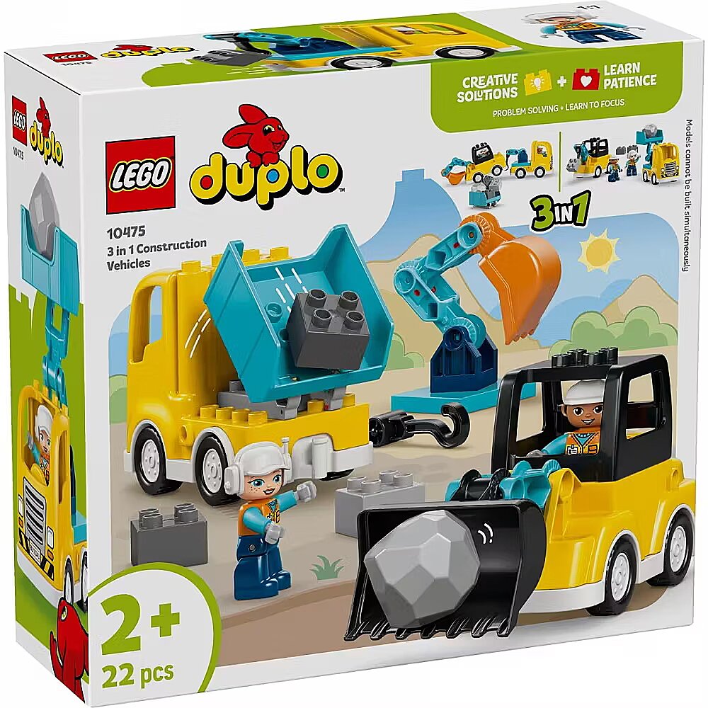 Description - Blocks DUPLO 10475 3 in 1 Construction Vehicles Spark your little one's creativity with the LEGO DUPLO My Town 3-in-1 Construction Equipment (10475) set for kids two years and up. Rebuilding is a fun way for kids to create six different toy trucks.