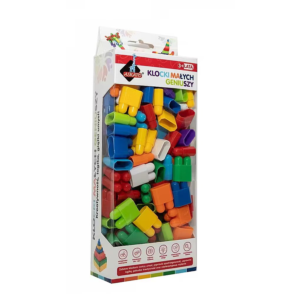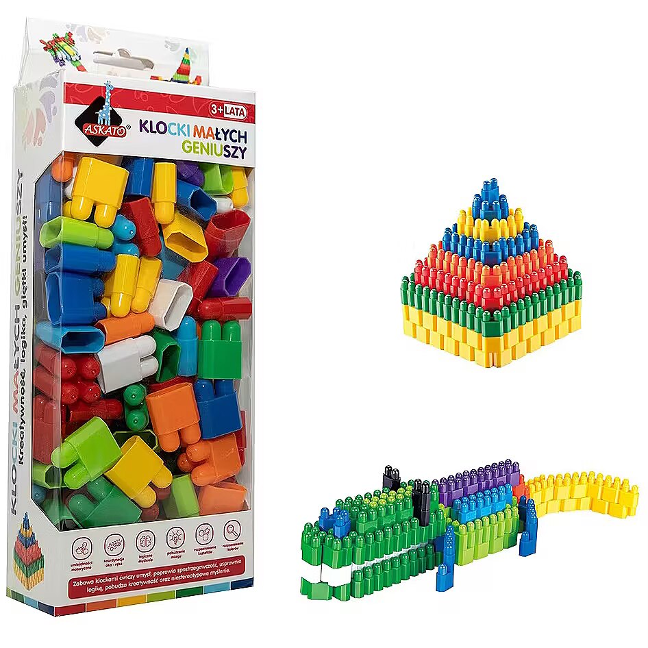 Description - Educational bricks Fantastic, unique bricks to develop your child's imagination and spatial perception. As many as 150 elements in 10 colours allow to create fantastic figures such as a lion, crocodile, ship or tank. The toy develops children's creativity, and the intense colours of the bricks encourage them to create more and more difficult structures.