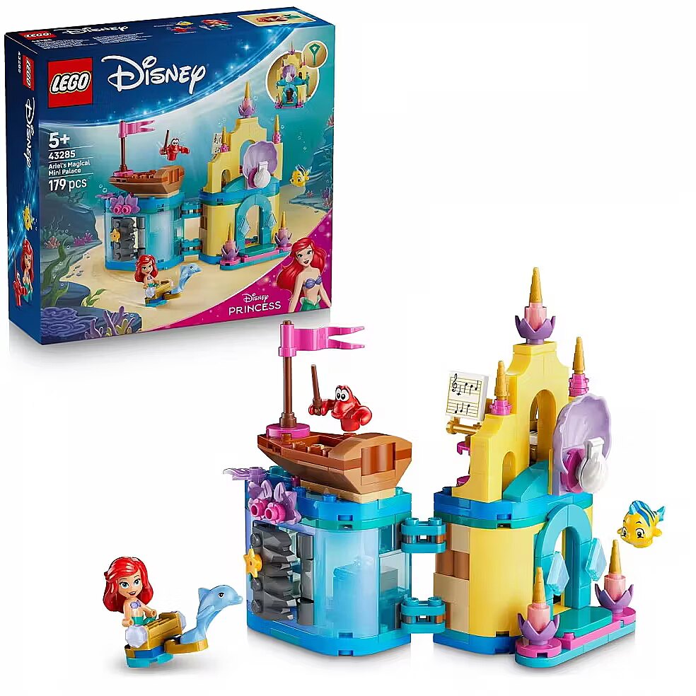 Description - Blocks Disney 43285 Ariels Magical Mini Palace Kids aged five and up can explore their creativity with the LEGO Disney Princess Ariel's Magical Mini Palace (43285) from Disney's The Little Mermaid. This microscale building set is a small toy that contains a big world. This LEGO brick set for girls and boys features three LEGO Disney characters: Ariel, Flounder, and Sebastian, plus a small palace and grotto with a lock, a small boat, and much more. This portable, microscale toy with a lock is designed for on-the-go play.