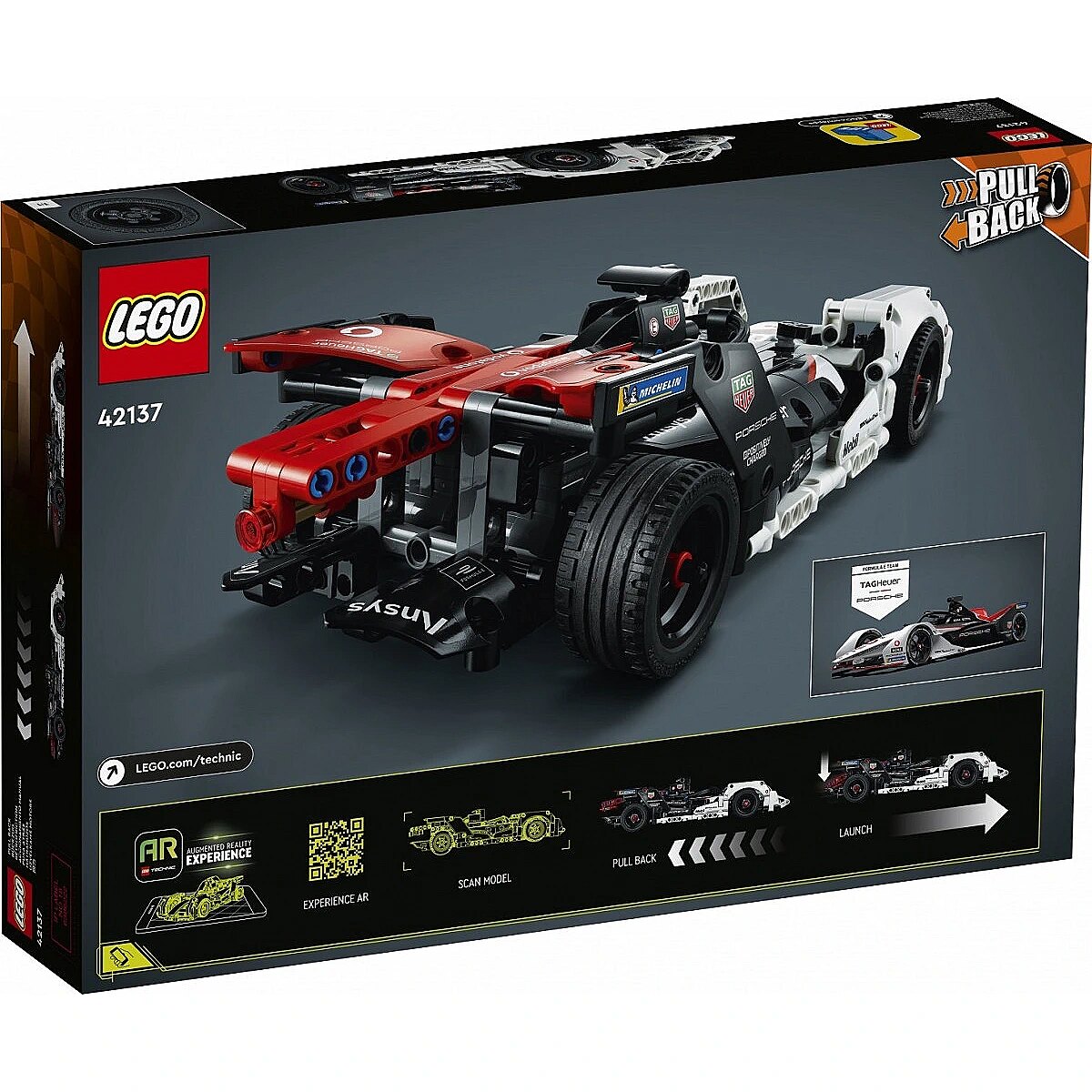 Technical_details - 42137 Technic Formula E Porsche 99X Electric Construction Toy Make a great gift for Formula E racing and Porsche fans aged 9+ with this fast-paced LEGO Technic 42137 Formula E Porsche 99X Electric pull-back motor. With this model car kit, kids can recreate all the details of the famous Porsche, then recreate all the action of a real race day with the 2 pull-back motors and the LEGO Technic AR app. With the help of augmented reality, children can immerse themselves in the role of a top Porsche Formula E racing driver in the app. They choose the circuit, decide their energy management and use their racing skills to work their way up the track. Thanks to the 2 pull-back motors, kids can decide how much energy they want to charge the race car with before they pull the trigger and send it racing across the AR track in front of their eyes! With the LEGO AR app, control is in the hands of the kids. LEGO Technic model car kits not only look like real vehicles - they work like real vehicles too. They offer young LEGO master builders a playful introduction to technology and mechanics and make wonderful, inspiring gifts for children and young people - the engineers of tomorrow. Type: construction toy EAN code: 5702017156156 Manufacturer part number: 42137 Series: Technic Parts: 422 pieces Age recommendation: from 9 years Target group: school children, young people Material: Plastic Warnings: Caution: Not suitable for children under 36 months! Warnings: Attention: Danger of suffocation due to small parts! Dimension: Width: 120mm x Height: 60mm x Depth/Length: 310mm