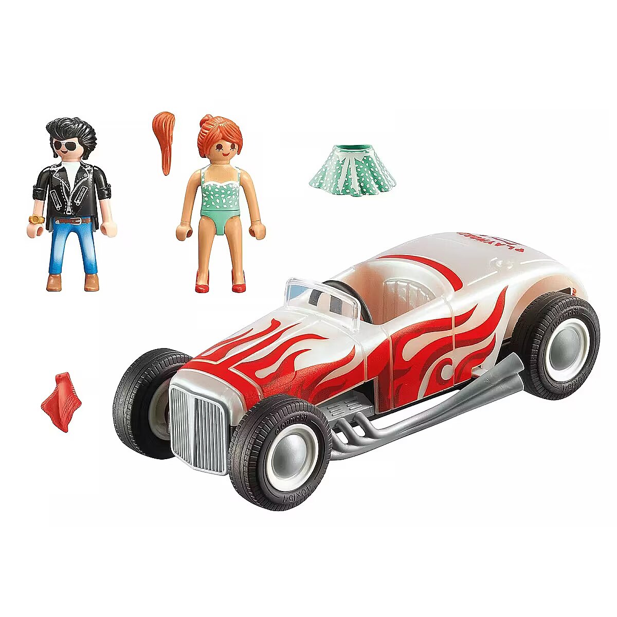 Description - Building Blocks City Life 71078 Hot Rod Starter Set The perfect introduction to the PLAYMOBIL play worlds! Welcome to the 50's! Hit the track with a cool hot rod. Get in and go with the cool Hot Rod Starter Set from PLAYMOBIL! The driver rocks freely behind the wheel of his elegant Hot Rod with its impressive flame pattern. Is his new girlfriend already waiting for him? The PLAYMOBIL Starter Packs are the perfect introduction to the big, colorful world of PLAYMOBIL. Play with this set on its own or combine it with other fun PLAYMOBIL sets. The set includes two PLAYMOBIL figures, a car and a cloth. There is room for one figure in the vehicle. The two-piece skirt can be removed from the female figure.
