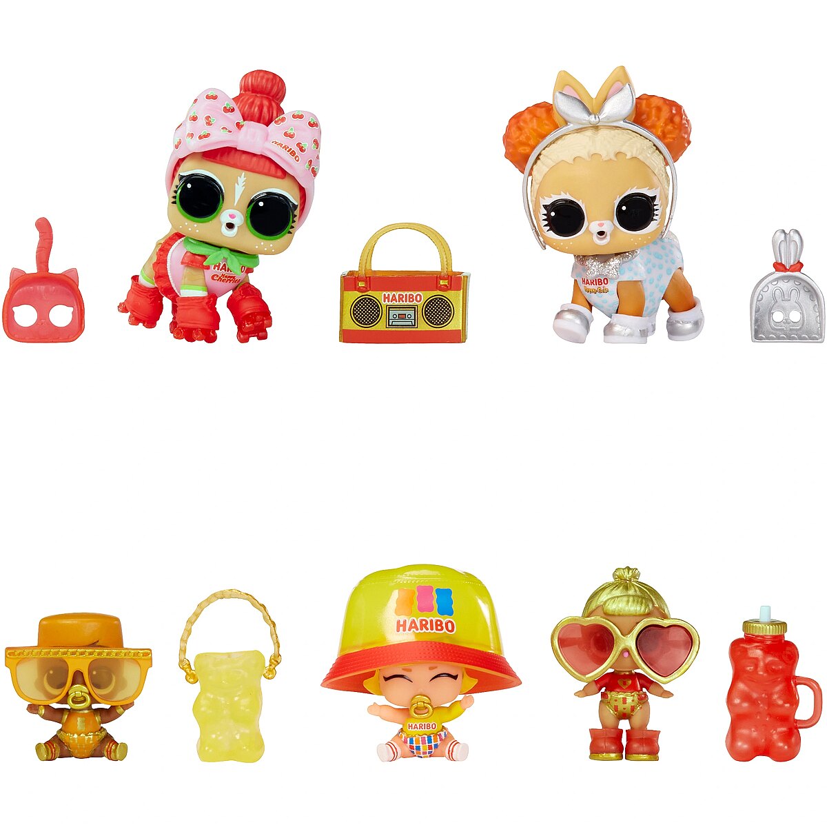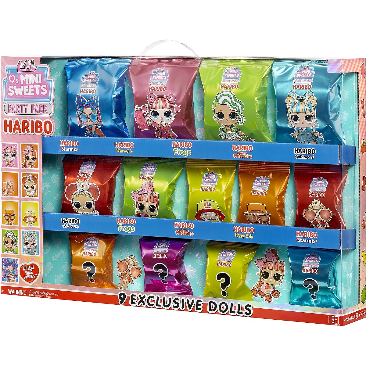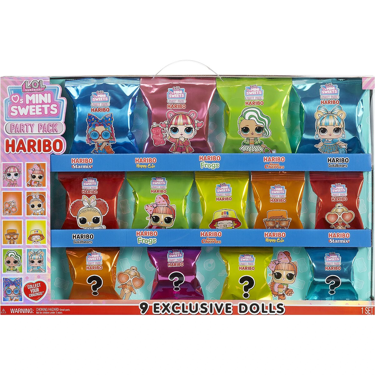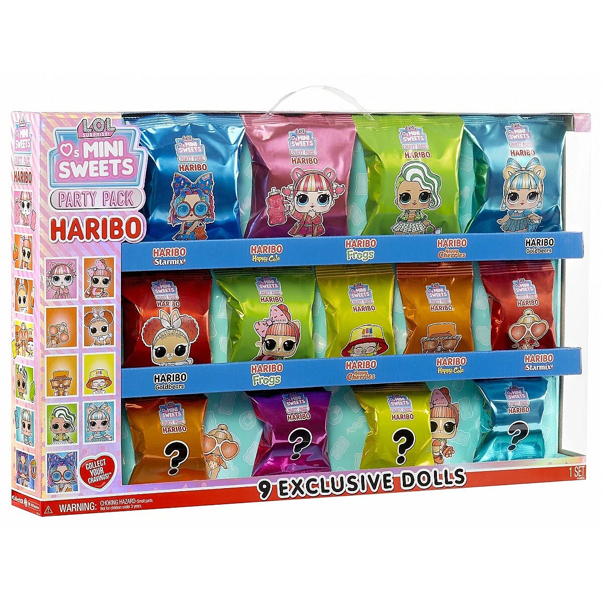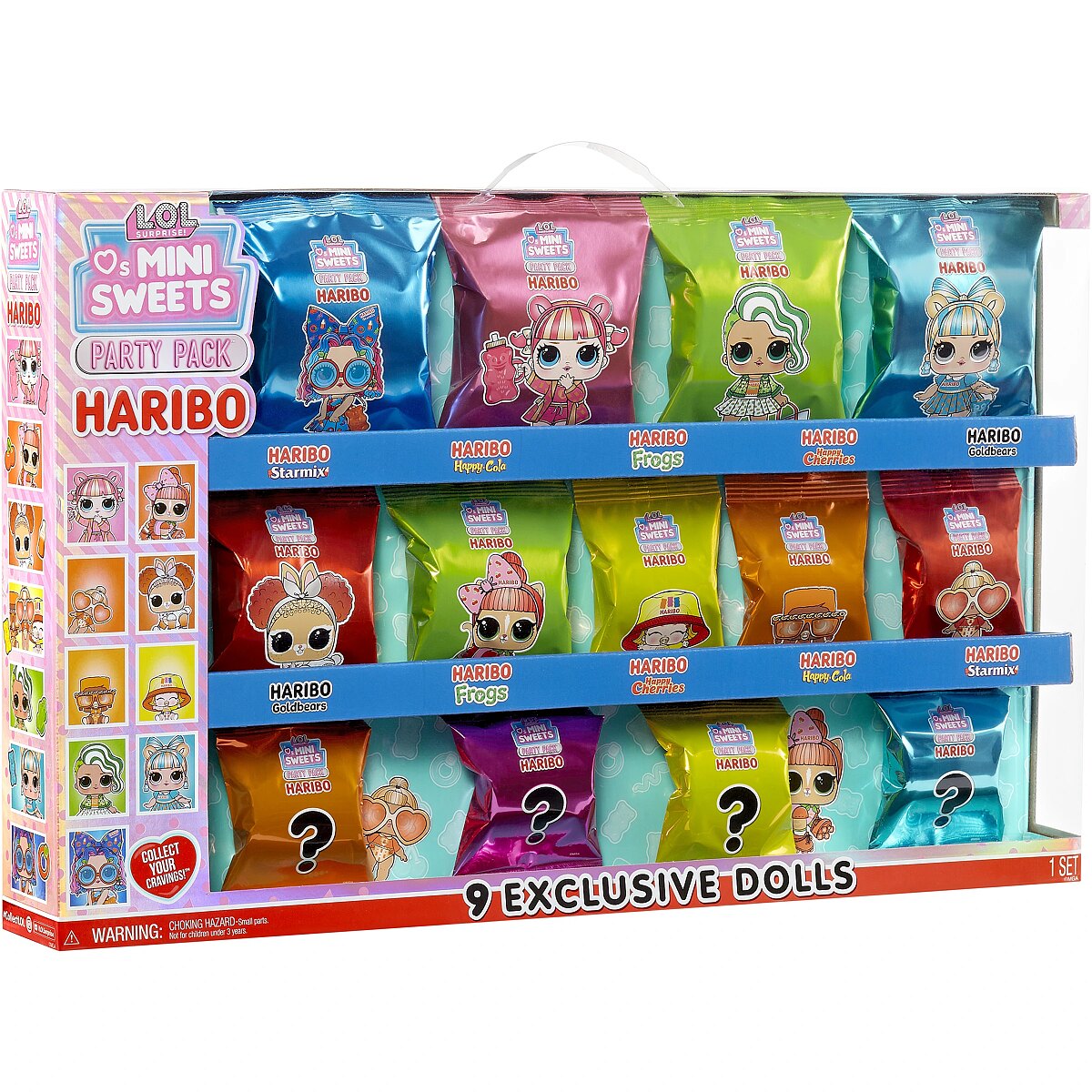 Description - LOL Surprise Loves Mini Sweets X HARIBO Party Set doll The cutest babies around are back! Introducing series 3 of LOL Surprise Loves Mini Sweets! LOL Surprise has partnered with iconic brands like Junior Mints, Tootsie, Tootsie Pop, Hersheys Bubble Yum, Dots, Haribo Goldbears, Haribo Frogs, Haribo Twin Snakes and Haribo Happy Cherries to bring you dolls inspired by your favorite sweets! Each doll has a unique style that is tastier than ever and goes with any treat.