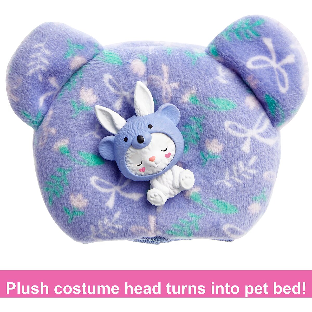 LongDesc - Barbie Cutie Reveal costume-themed series Chelsea dolls offer the cutest unboxing experience with six surprises! Discover a Kitten in a Red Panda costume, a Dog as a Frog, a Teddy Bear as a Dolphin or a Bunny as a Koala. Remove the plush costume to reveal a Chelsea doll. Which doll will you reveal? Get cozier with more surprises like a skirt and mini pet that matches the doll's costume. Flip the plush top for an over-sized jacket and the costume head for a pet bed. Icy cold water adds even more cuteness with colour-change transformation on the mini pet; warm water changes it back for repeat fun! Kids will love discovering all the surprises in this cozy cute Barbie Cutie Reveal series. Each doll sold separately, subject to availability. Dolls cannot stand alone. Colours and decorations may vary.