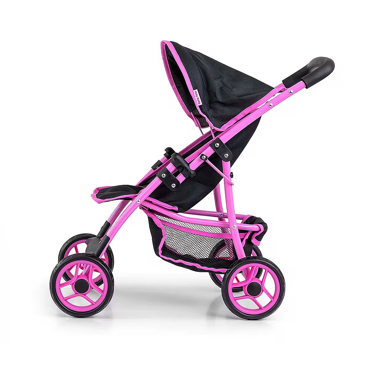 Description - Natalie Doll Pram The Natalie doll pram by Milly Mally is made of high-quality materials. The functions and appearance of the doll pram resemble a real baby pram. Natalie is a pram for dolls up to 50 cm long. It is equipped with a foldable hood, belts and wheels. It also has a basket for doll accessories necessary for a walk, including milk bottles, clothes and diapers.