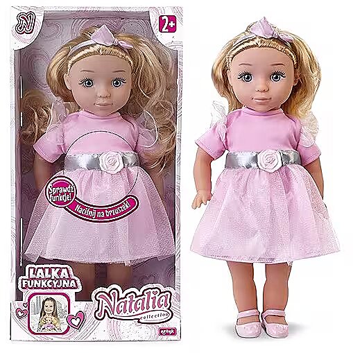 Description - Natalia function doll 36 cm Press my tummy and listen to what I say! The doll closes her eyes and speaks 4 sentences in Polish: Hello, I'm Natalia! Shall we go for a walk? I really like singing, it's great fun! I love you Mummy!
