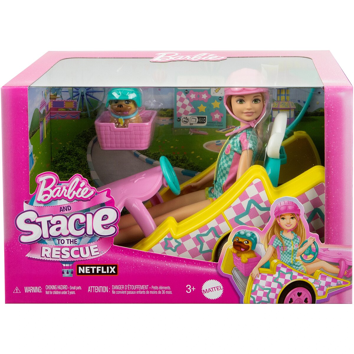 Technical_details - Stacie puts the pedal to the metal with this Barbie playset: With its rolling wheels, chic plaid design, removable flag, and doggy basket, this go-kart looks like it came straight out of the animated film "Barbie and Stacie to the Rescue." would be. The puppy basket can be attached to the rear of the vehicle so that Stacie's puppy can also ride along. The Stacie doll comes in a chic racing outfit with a pink helmet. Puppy's safety is also ensured with a pink helmet. Item no. : 100025578 Kind of doll EAN 0194735180325 Manufacturer no. HRM08 Barbie Family & Friends series Age recommendation from 36 months Target group of kindergarten children Material: Plastic Warnings Warning: Not suitable for children under 36 months! Caution: Danger of suffocation due to small parts that can be swallowed!