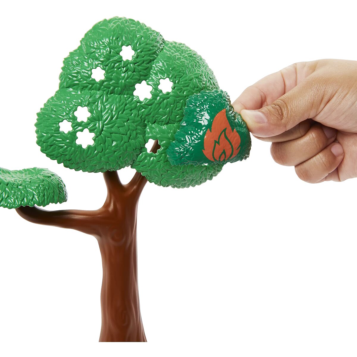 Accessories included - Lalka Barbie ubrana w dwuczęściowy mundur strażaka, czapkę i buty Remiza strażacka 2 figurki zwierząt Drzewo Element zmieniający kolor w kształcie ognia Drabina 8 dodatkowych akcesoriów