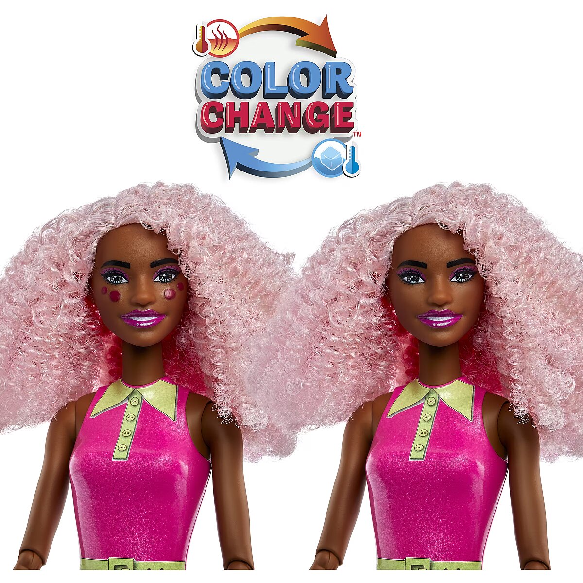 LongDesc - Barbie Pop Reveal Bubble Tea Series dolls offer a sensory unboxing experience with eight surprises! Unscrew the lid with the Slime and poke through the film with the straw for squishy fun. Peel the film on the cup to reveal a bubble tea-scented Barbie doll and eight more surprises! Which doll will you reveal? There's Taro Milk, Berry Bliss, Green Tea or Mango Mochi. Continue unboxing to discover two reusable ice cubes that pop open to reveal a skirt and pair of shoes. Mystery bags reveal a straw, a purse and a squishy, scented matching pet! Discover more wow with colour-change transformations on Barbie doll's face. Kids will want to collect them all! Each doll sold separately, subject to availability. Dolls cannot stand alone. Colours and decorations may vary.