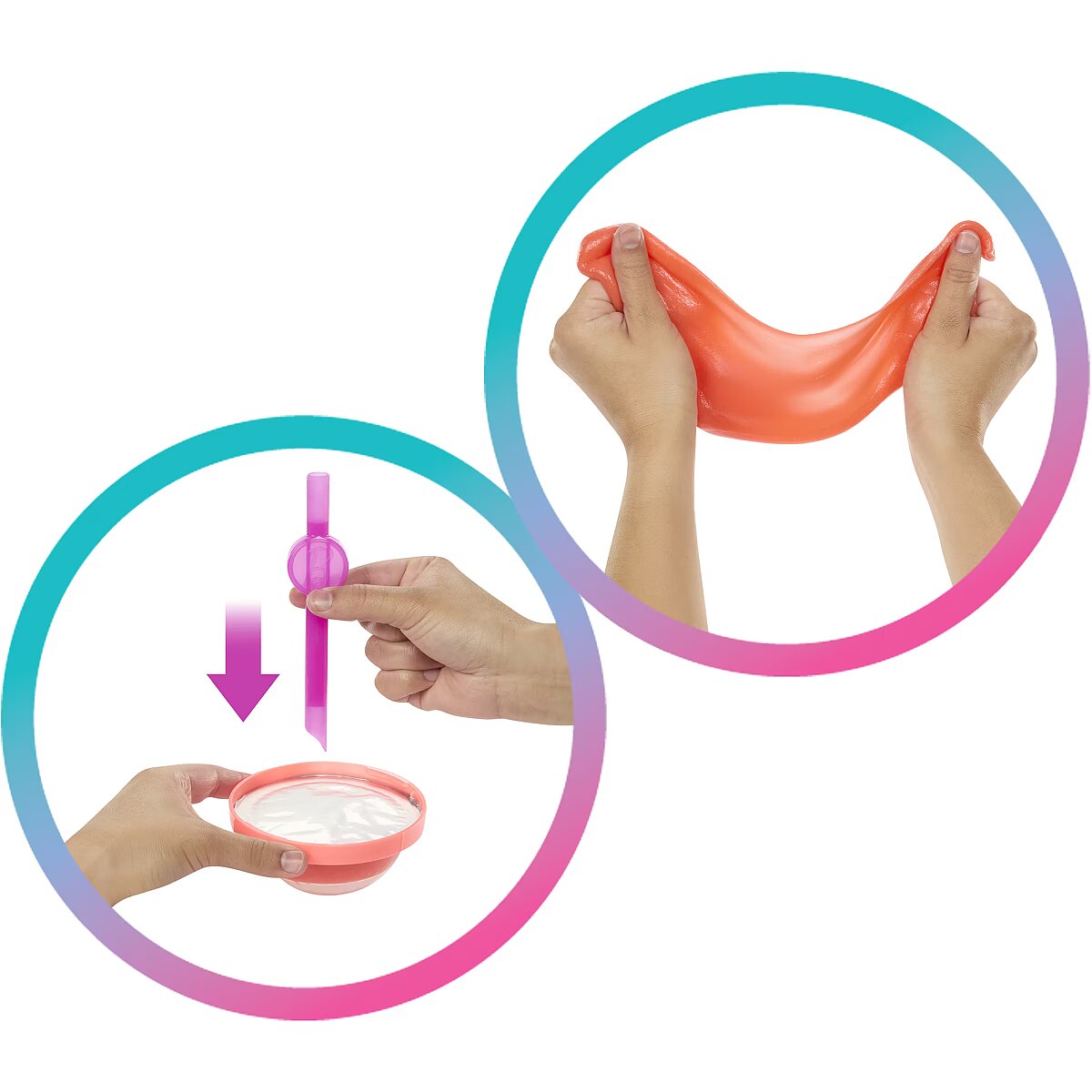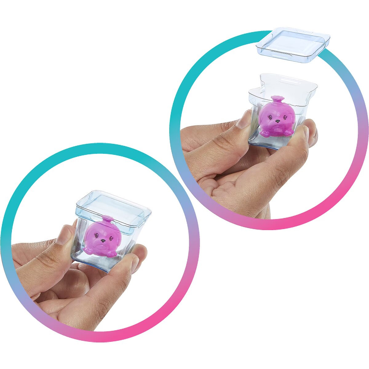 Packaging content - Packaging content - Includes scented Barbie fashion doll with colour-change feature, 1 cup with Slime, straw and lid, 1 scented squishy pet, 1 skirt, 1 pair of shoes and 1 purse.