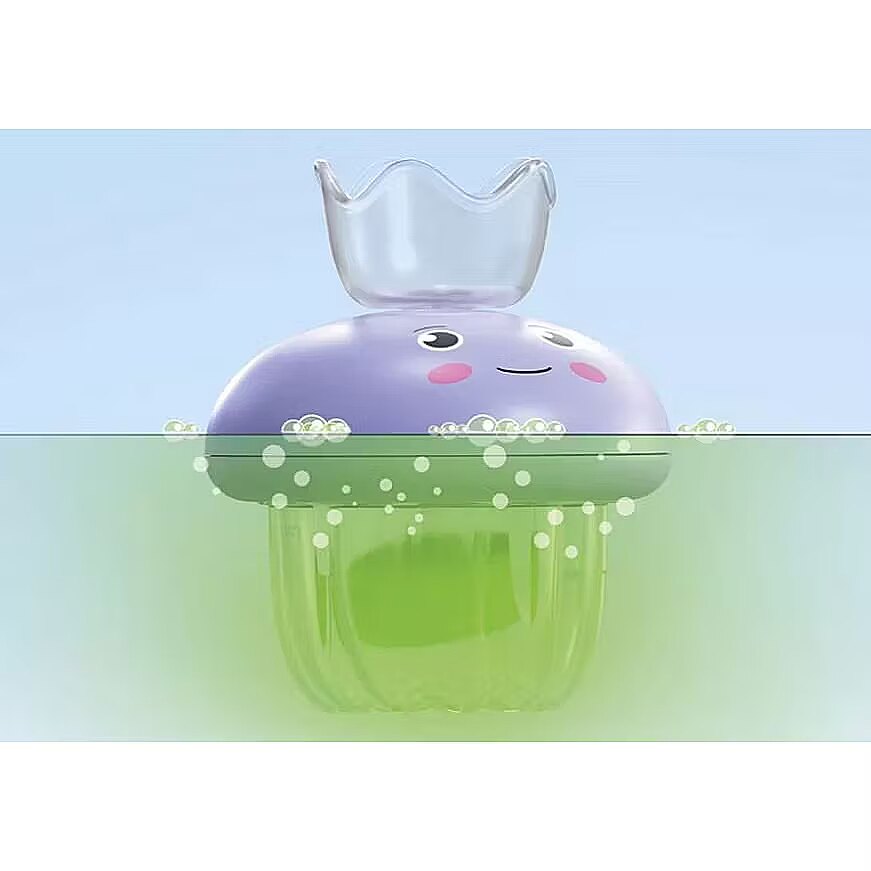 Special product features:     Large jellyfish with a safe twist-and-press mechanism for bath tablet storage     Transparent observation cup for underwater discoveries     Three Tinti bath tablets in green, turquoise, and purple with a strawberry scent     Refill packs with additional bath tablets available separately     Drainage holes allow water to be emptied from inside the jellyfish