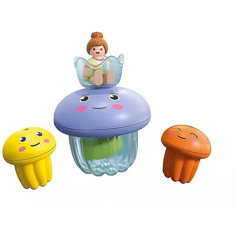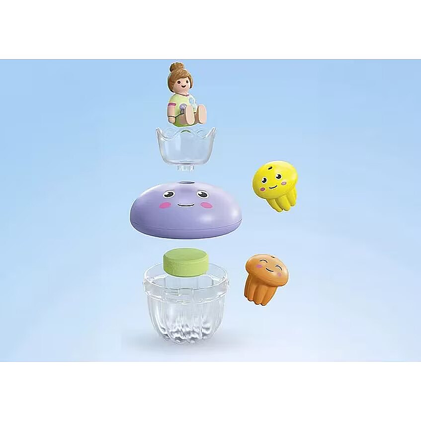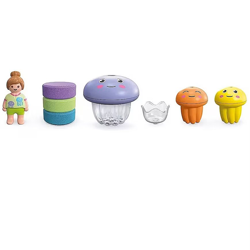 Ready, set, splash! Who will be the first in the tub? With the fantastic new sets created in collaboration with Tinti, bath time is even more exciting! Three different colorful bath tablets from Tinti turn the water into a bubbly, fragrant delight. Whats your favorite bath water color? Today is jellyfish bath day! The jellyfish family enjoys their time together in the tub. Decide which little jellyfish will swim around and which one will relax on the big jellyfishs head. Which color will you choose for your bath today?