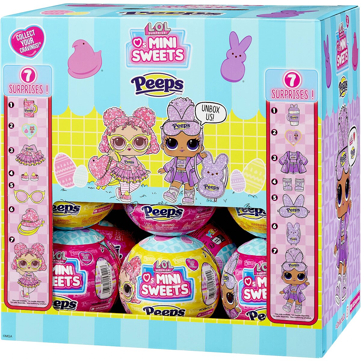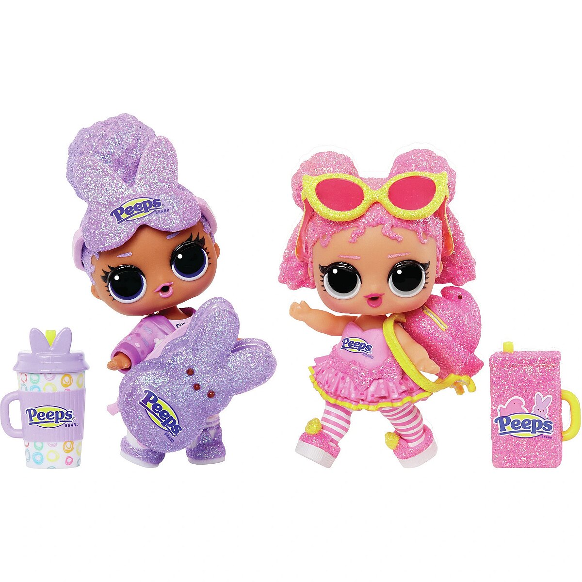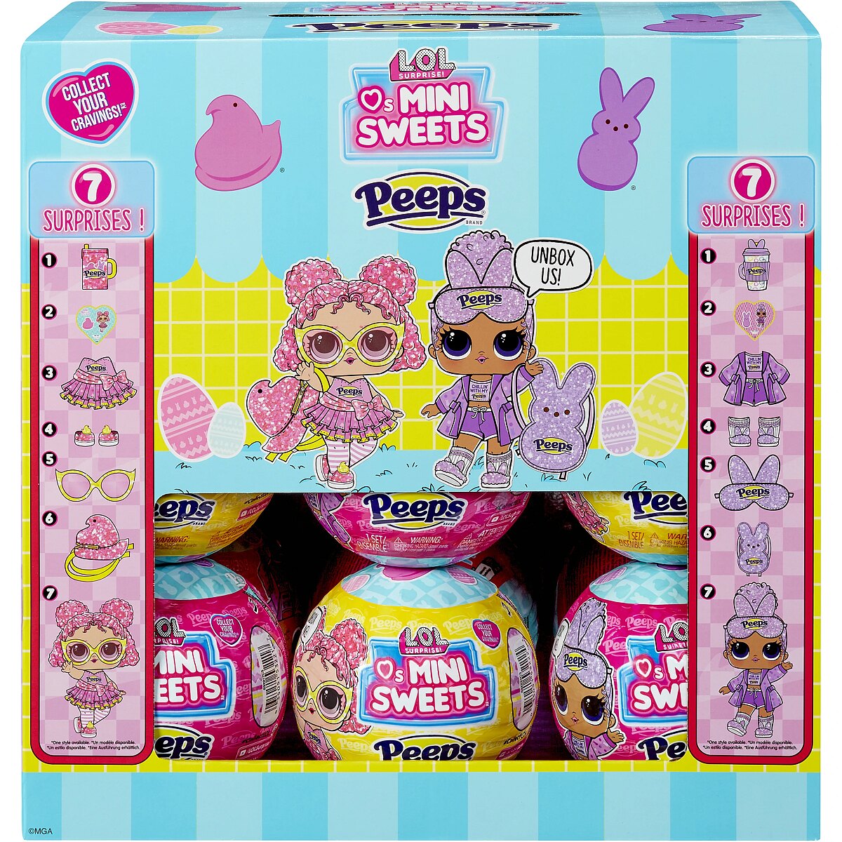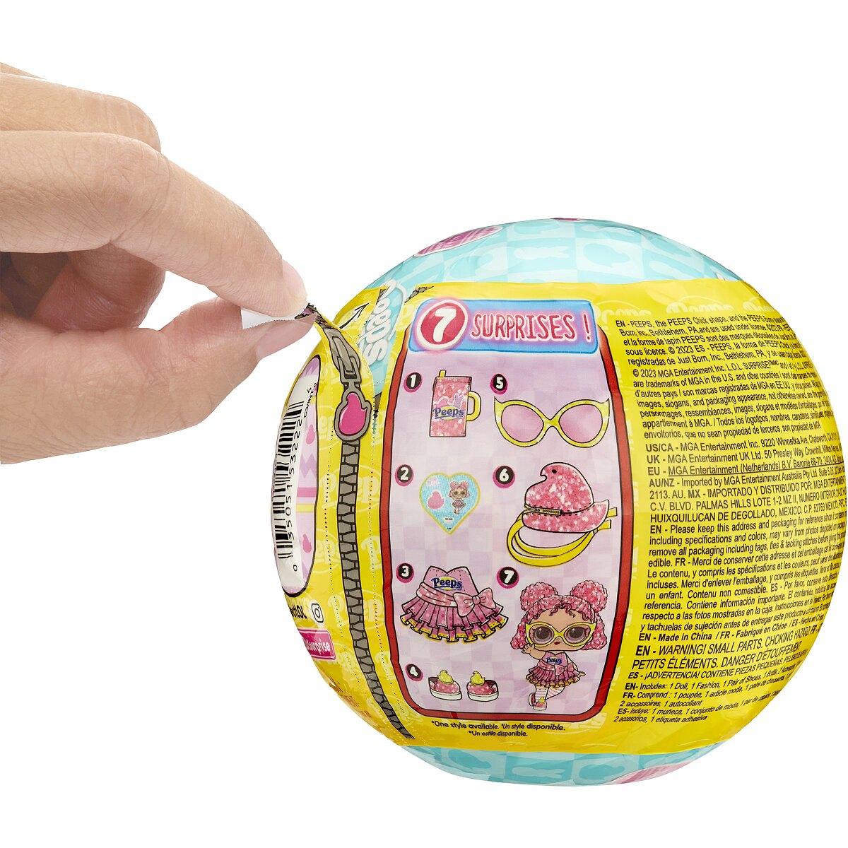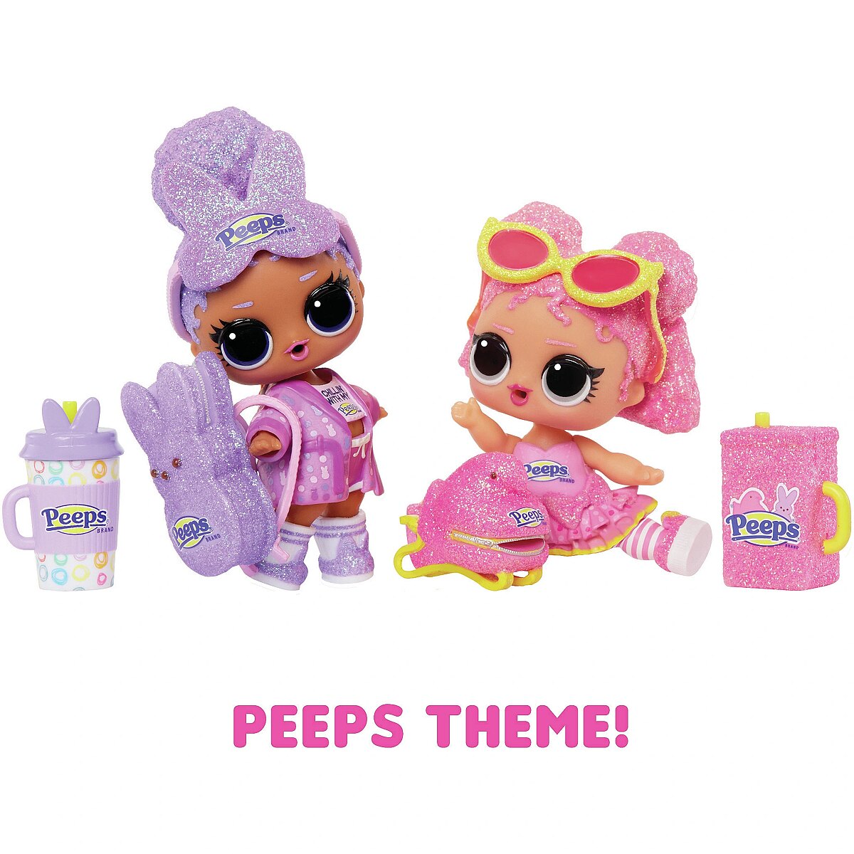 LongDesc - Introducing limited edition LOL Surprise! Loves Mini Sweets – Peeps Tots! LOL Surprise has partnered with iconic candy brand Peeps to bring you the most outrageously, cute spring ever. Fluff Chick has unique style with shimmering, sparkly pink details like her ruffle dress, chick backpack, and chick styled shoes that match your favorite Peeps treats! Unbox 7 surprises and celebrate spring with Fluff Chick’s adorable personality and style! Collect both LOL Surprise! Loves Mini Sweets Peeps Cozy Bunny and LOL Surprise! Loves Mini Sweets Peeps Fluff Chick! Both Cozy Bunny and Fluff Chick are hopping into spring with exciting goodies to share.Includes 7 surprises: (1) L.O.L. Surprise! Loves Mini Sweets Peeps Tots doll; (2) Fashion; (3) Shoes; (4) Bottle; (5) Accessory; (6) Accessory; (7) Sticker. LOL Surprise collectible dolls with stylish hair, fun to dress outfits and many detailed accessory pieces make a perfect toy and playset for kids! As birthday gifts and gifts for any special occasion, dolls provide hours of social play with siblings and friends! From MGA Entertainment, creators of LOL Surprise fashion and collectible dolls, Rainbow High fashion dolls, Na Na Na Surprise dolls, Bratz fashion dolls, MGA's Dream Ella fashion dolls, MGA's Glitter Babyz baby dolls, Lalaloopsy, Poopsie Surprise girls dolls, Baby Born Surprise Baby Dolls and Collectibles, Little Tikes kids toys and many other favorite brands.