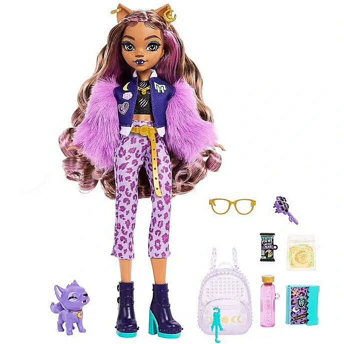 Packaging content - Packaging content - Includes 1 Clawdeen Wolf doll, 1 pet figure, and accessories. Doll stand not included. Doll cannot stand alone. Colours and decorations may vary.
