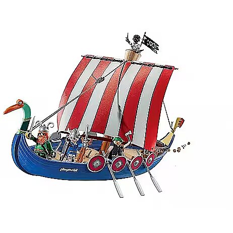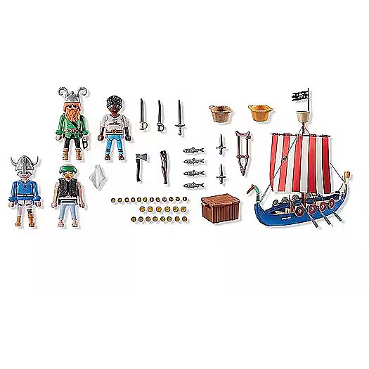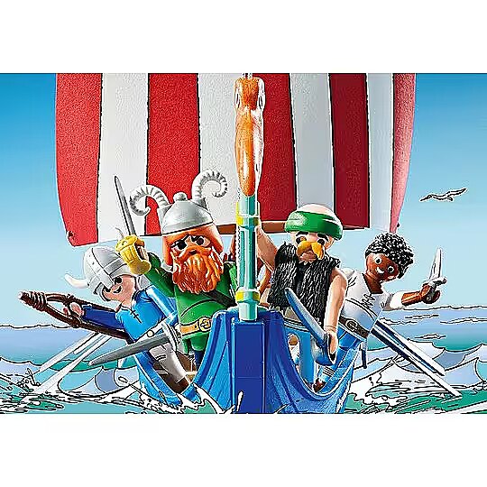 Przygotuj się na morskie przygody ze statkiem pirackim PLAYMOBIL Asterix! Z miejscem dla sześciu wioślarzy i punktem obserwacyjnym w bocianim gnieździe, piraci są gotowi do akcji. Schowaj skrzynię ze skarbami, podnieś piracką flagę i chwyć za miecze i szable, aby odeprzeć wrogów. Wyposażony w zabawne detale, takie jak wędka, złote monety, a nawet drewniana kula, statek ten jest idealny do śmiałych najazdów lub pechowych starć z Galami!