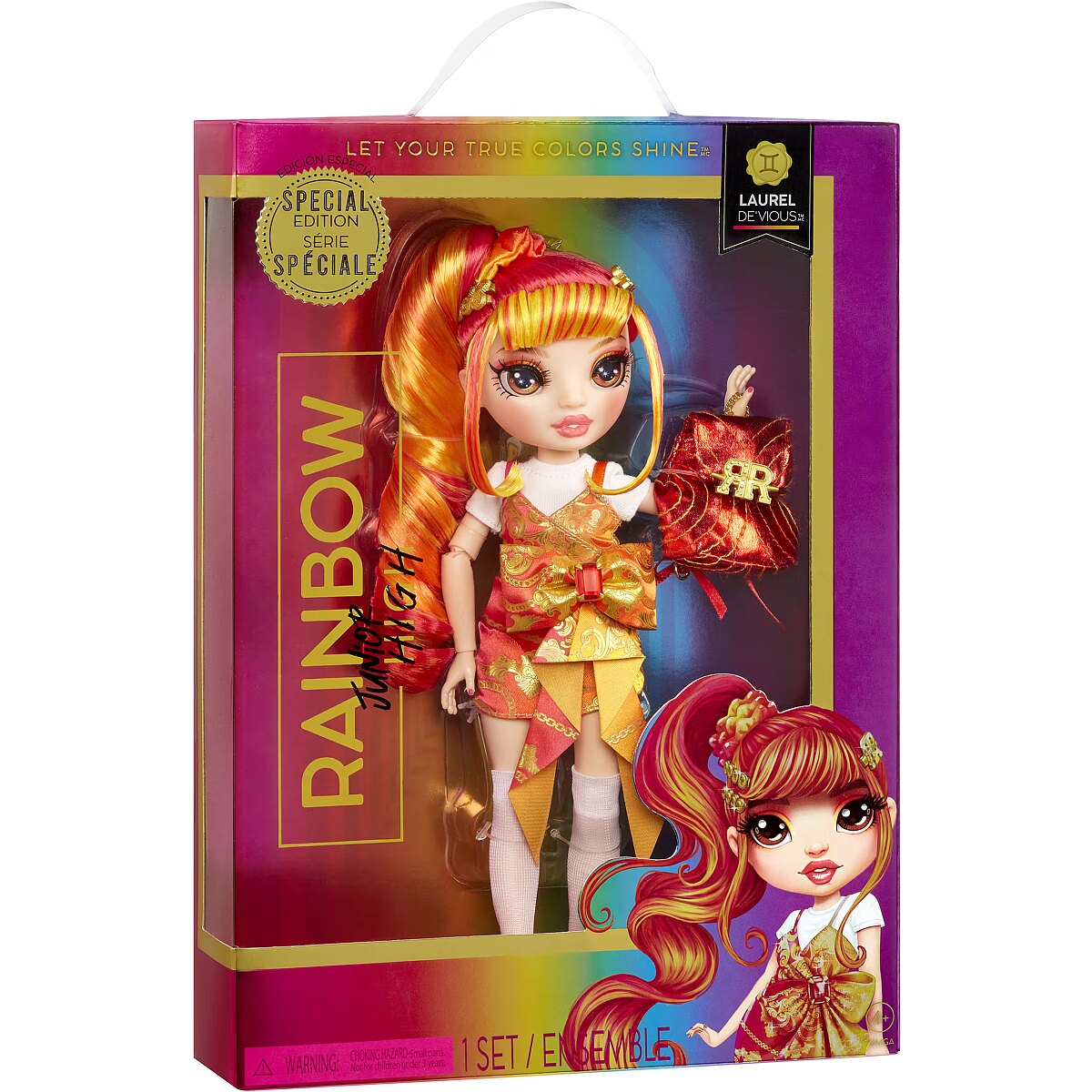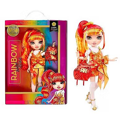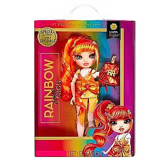 LongSummaryDescription - Rainbow High Junior High Special Edition Laurel De'Vious (Orange). Doll type: Fashion doll, Doll's gender: Female, Recommended age (min): 4 yr(s), Suggested gender: Girl. Height: 230 mm, Weight: 155 g. Material: Plastic, Textile, Product colour: Multicolour