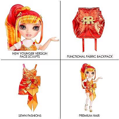 Description - Rainbow High inspires creativity! Go back in time and meet your favorite students before they became friends and followed their creative dreams to Rainbow High. Each themed playset comes with a complete doll outfit, doll with new younger face-sculpts, and a soft vinyl backpack to carry their school essentials. This playset will give kids endless joy and imaginative storytelling entertainment.