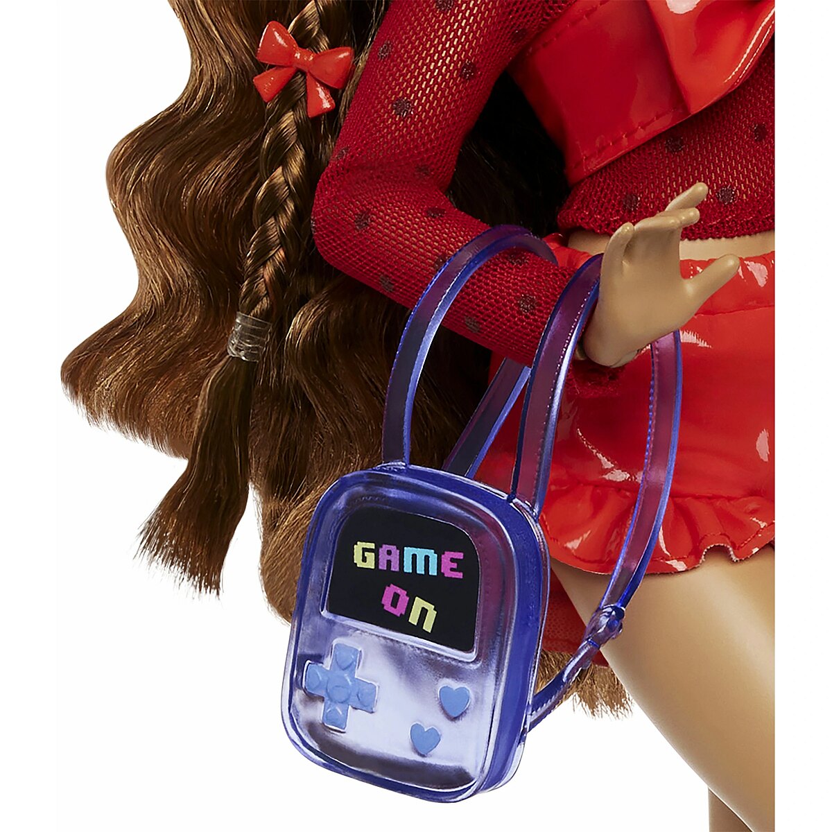 Packaging content - Packaging content - Includes 1 Barbie Dream Besties Teresa doll wearing a red lace top, red bow top, red shorts, and shoes, 5 hair clips, 1 headphones, 1 sunglasses, 1 phone, 1 phone case, 1 keyboard, 1 backpack, and 1 other accessory. Doll cannot stand alone. Colours and decorations may vary.