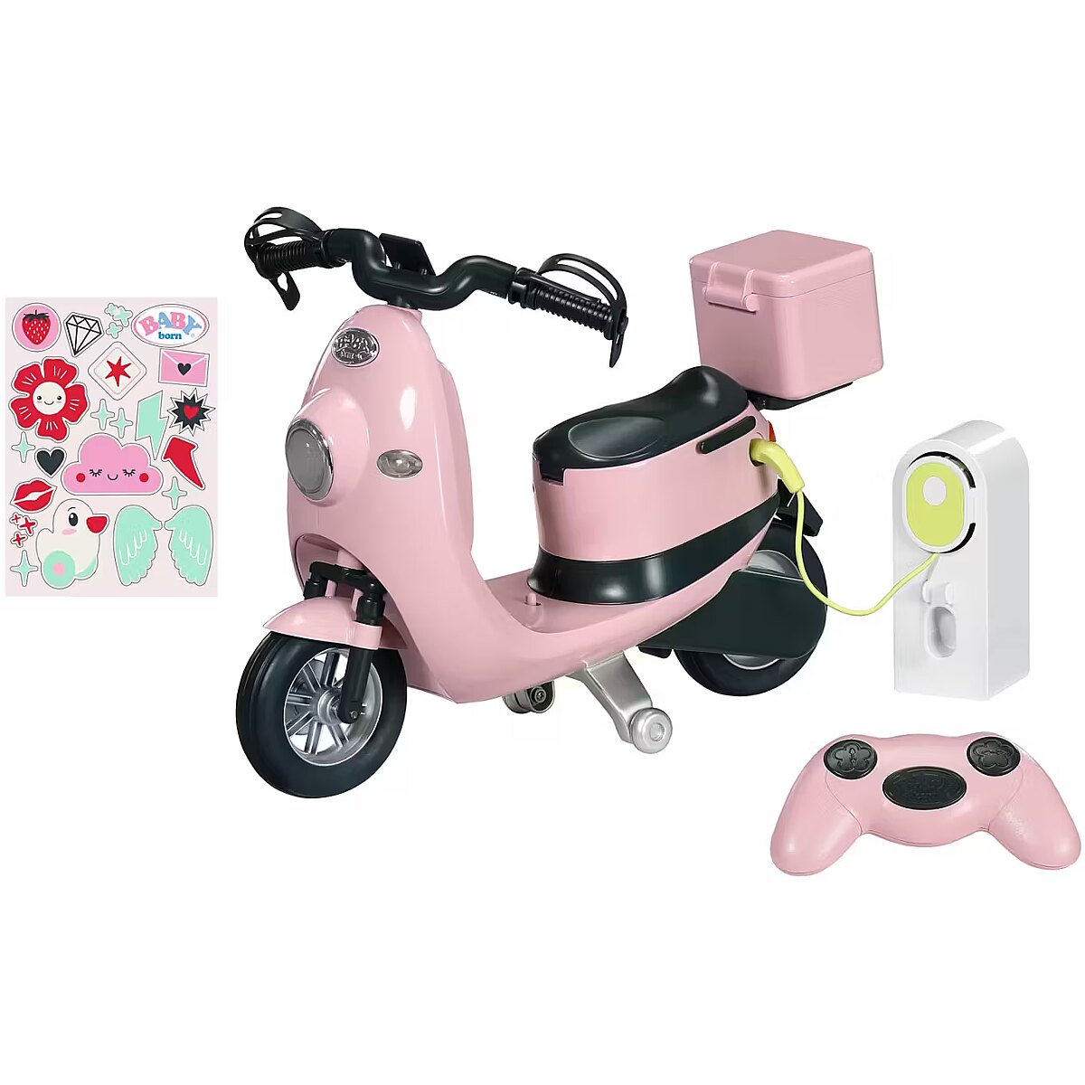 LongDesc - The best way to get around town is on a little scooter - which is why BABY born is also taking to the streets with her new, modern e-scooter. It can be controlled by remote control and travels forwards and backwards. Of course, an e-scooter like this also needs to be charged:During the charging process, the rear light lights up when it comes into contact with the charging station to authentically simulate the charging process. Have a safe journey BABY born!