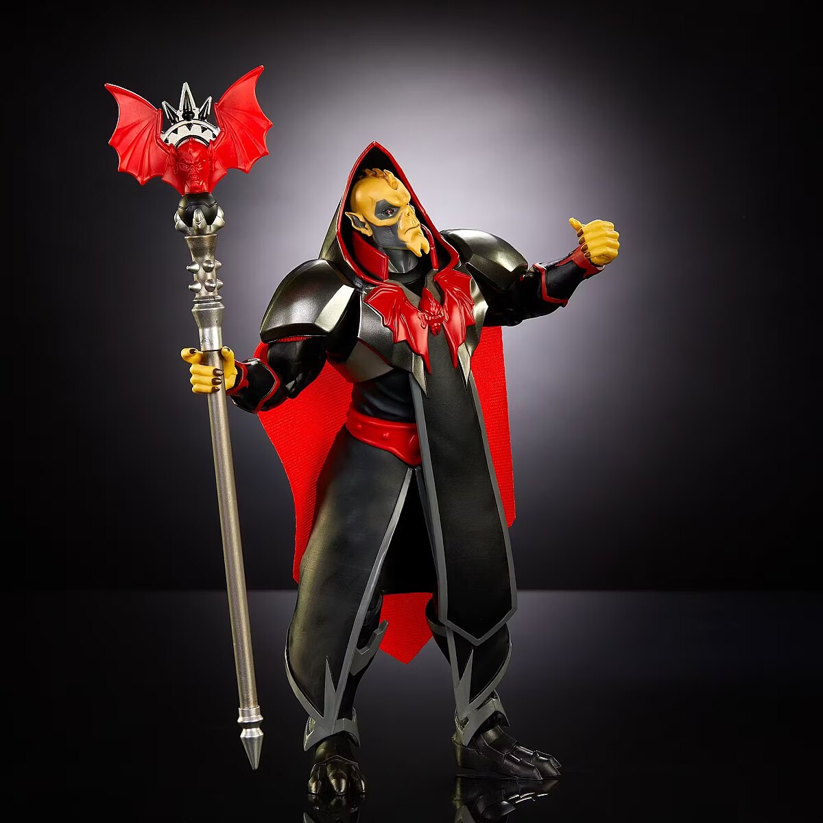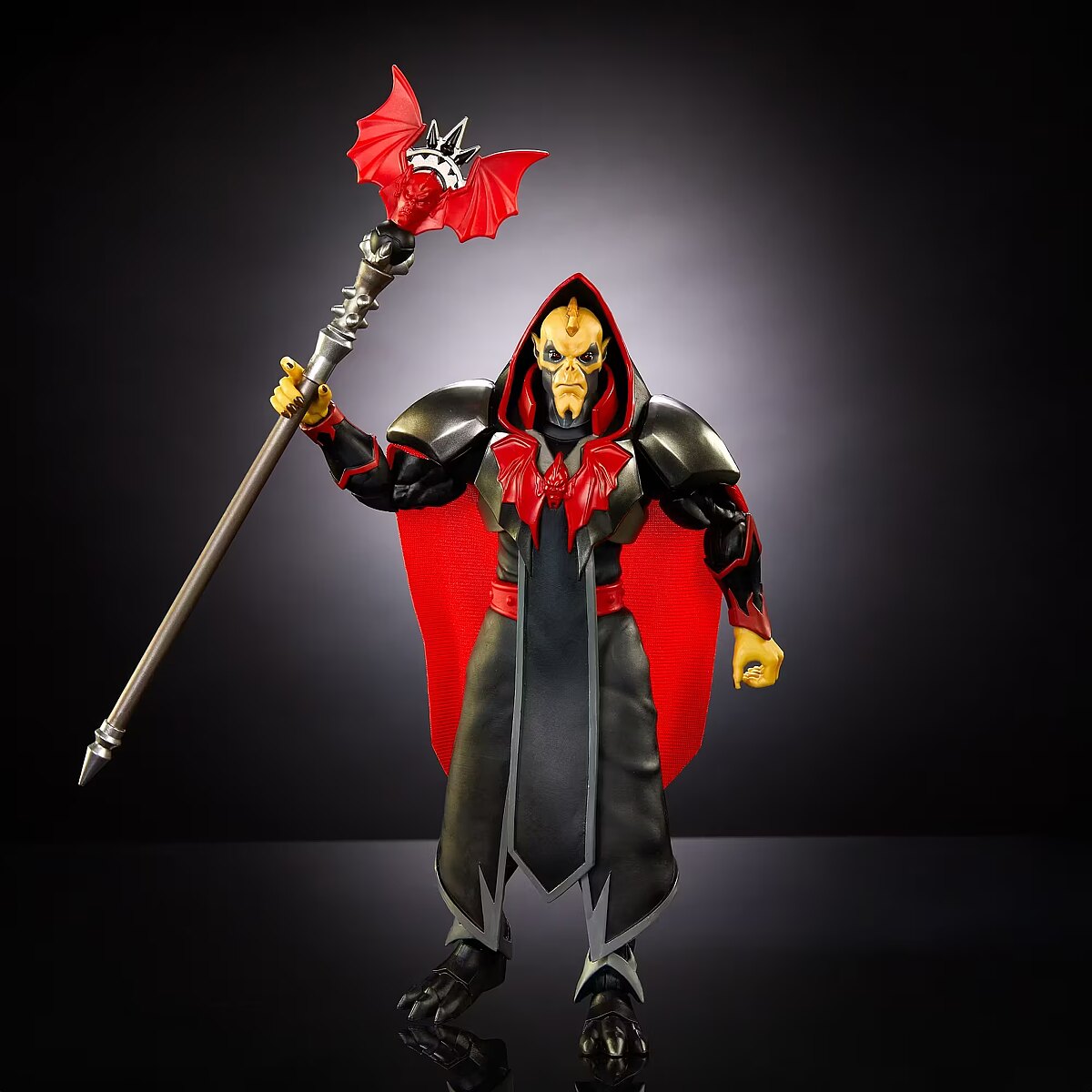 LongDesc - This Masterverse action figure of Emperor Hordak is based on Masters of the Universe: Revolution. With the high level of detail collectors have come to expect, this 7-inch scale edition has 30 points of articulation and comes with a full-length soft goods cape, removable head, an extra set of swappable hands and his signature bat-topped staff. The figure of the demented mind behind the Cult of Motherboard comes beautifully packaged in a window box suitable for display. This fierce-looking Hordak makes a great gift to start or build a MOTU collection. Colours and decorations may vary.