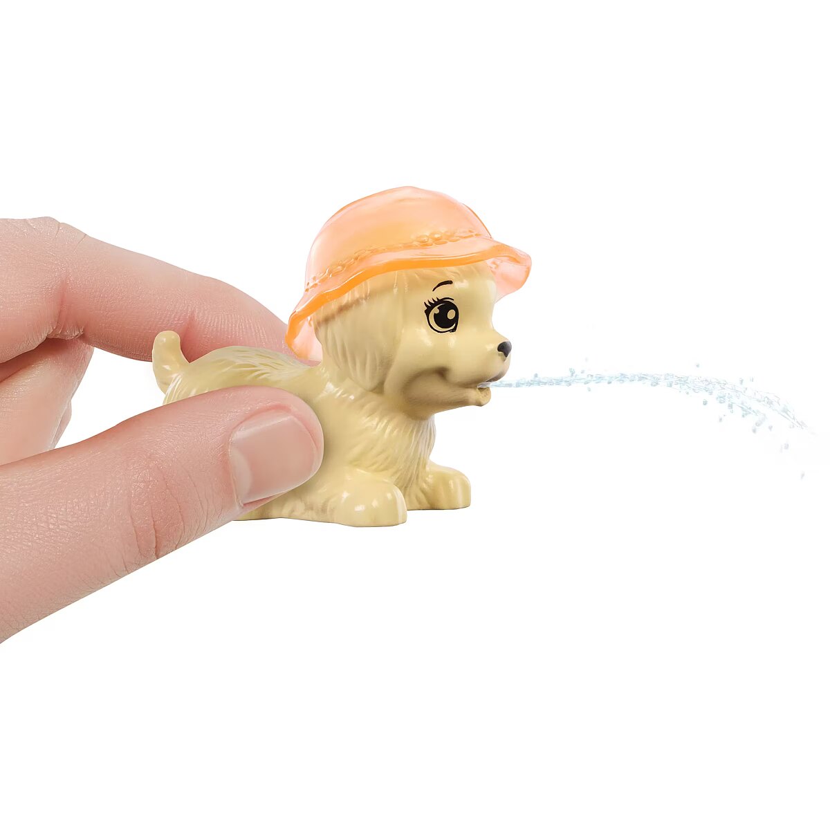 LongDesc - Make a splash with this Barbie Puppy Pool Party playset! Race the pups down the doggy house slide and into the heart-shaped puppy pool. Squeeze the squishy puppy and it squirts water! For a colour-change surprise, use icy or warm water on the puppy with the goggles and snorkel. Kids can play out a pawesome pool day with accessories like a doggy boogie board, feeding bowls, a tie-dye towel, and more. Also included is Barbie doll in a swimsuit and cover up, ready to have fun with her furry friends! Colours and decorations may vary. Doll cannot stand alone.