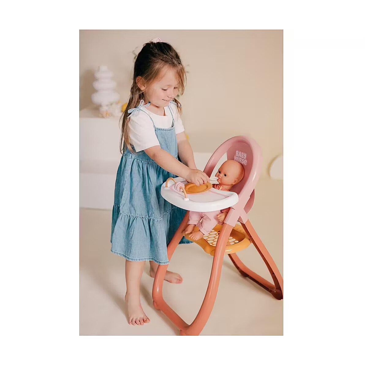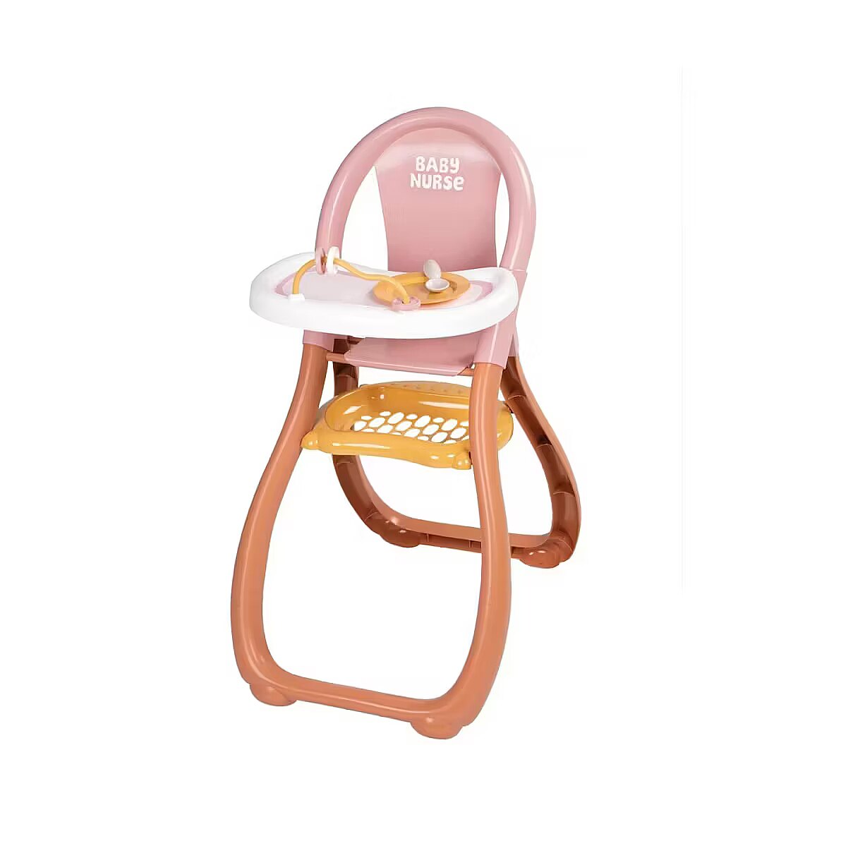 Description - Smoby Baby Nurse Higchair Is your favourite doll hungry? Then the Smoby Baby Nurse doll high chair is the perfect place to spoil your little one with their favourite food. Thanks to the wide opening, the doll can easily be placed in the highchair. Plates and spoons are already waiting on the food tray. A fun game of skill prevents boredom. The storage area under the seat offers space for additional accessories. The high-quality plastic is light and easy to transport. And if something goes wrong, no problem, because it can be wiped off quickly. The special design ensures good stability. Suitable for dolls up to 42 cm. Supplied without doll.