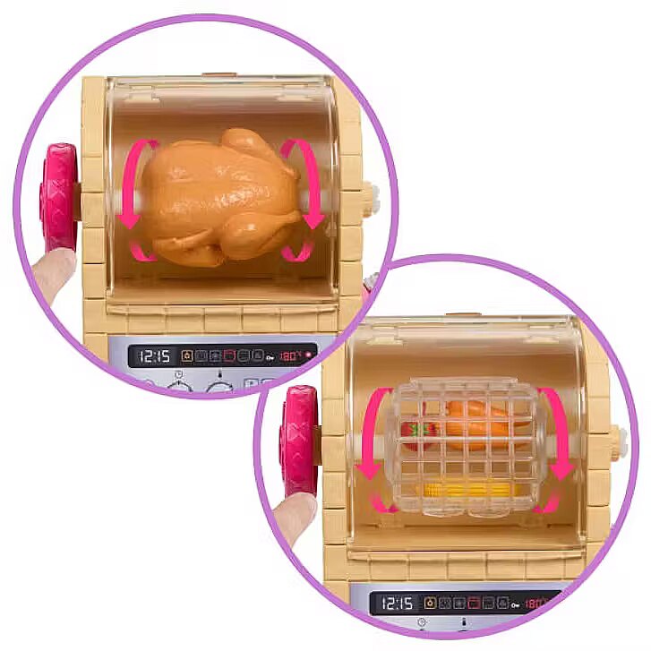 Description - Z tym inspirowanym filmem Barbie i Teresa Przepis na przyjaźń zestawem Kuchnia Teresy z lalką Teresą, kuchnią i ponad 20 akcesoriami wyobraźnia dzieci może upichcić najróżniejsze przygody. Teresa może przygotowywać znane z filmu przepisy w kuchni z elementami do zabawy takimi jak kuchenka, piekarnik z obrotowym rożnem, tamales mieszczącymi się w garnku oraz zmieniającymi kolor ciasteczkami. Mali smakosze pokochają realistyczną zabawę w przyrządzanie warzyw i serwowanie przepysznych dań. Lalka Teresa jest ubrana, jak na szefową kuchni przystało, w fartuszek podarowany przez babcię. Fani i dzieci od 3 lat pokochają odtwarzanie filmowych scen i wymyślanie nowych przepisów na przygodę! Lalka nie stoi samodzielnie. Kolory i elementy dekoracyjne mogą się różnić. Z tym zestawem Kuchnia Teresy inspirowanym filmem Barbie i Teresa Przepis na przyjaźń z lalką Teresą, kuchnią i akcesoriami możesz upichcić niezapomniane opowieści. W kuchni znajdziesz blat, kuchenkę, półki i piekarnik z rożnem, na którym może obracać się kurczak. W zestawie są akcesoria takie jak warzywa, koszyk, tamales, kurczak, garnek, sztućce i zastawa stołowa. W menu jest także deser: ciasteczka na tacy zmieniają kolor pod wpływem ciepłej i zimnej wody tę niezwykłą transformację możesz powtarzać wciąż od nowa! Lalka Teresa nosi swój filmowy strój z nadrukiem uroczego fartuszka! Inspirujące do zabawy z wyobraźnią lalki i zabawki Barbie i Teresa Przepis na przyjaźń to doskonały prezent dla fanów oraz dzieci od 3 roku życia. Sprzedawane oddzielnie.