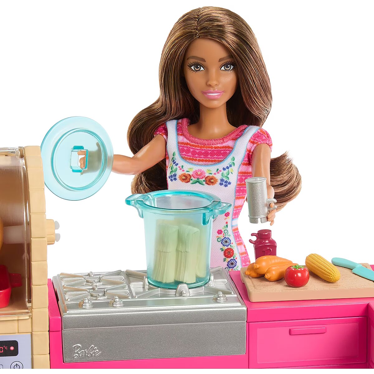 LongSummaryDescription - Barbie and Teresa Recipe for Friendship Teresa Doll & Kitchen Playset with 20+ Accessories. Doll type: Fashion doll, Doll's gender: Female, Recommended age (min): 3 yr(s), Suggested gender: Girl. Height: 226 mm, Weight: 420 g. Material: Fabric, Plastic, Product colour: Multicolour