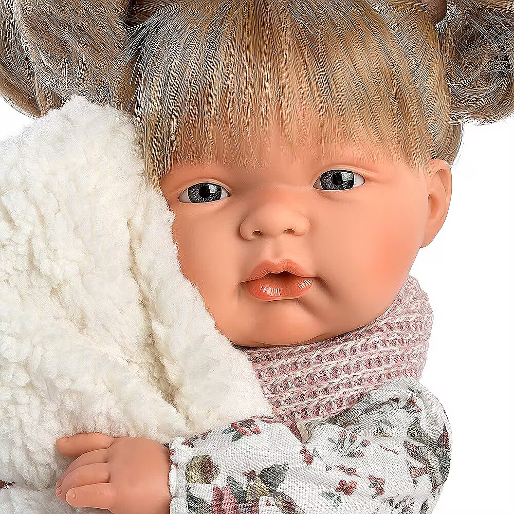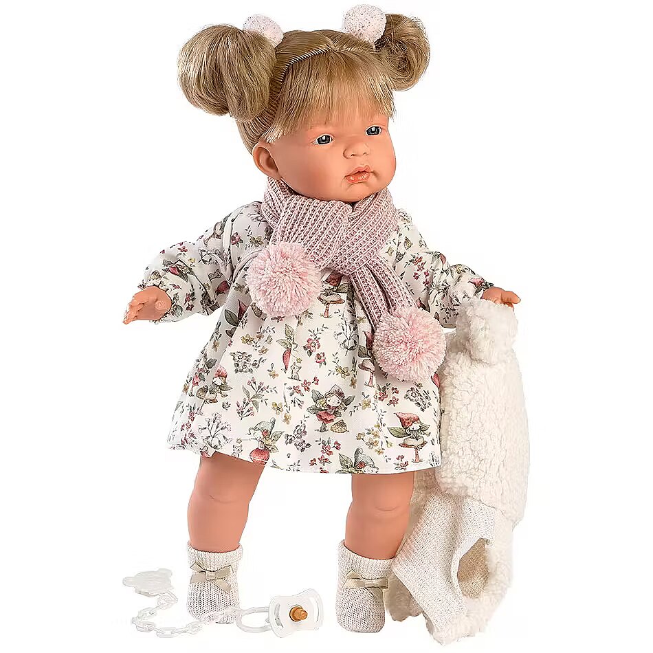 Description - Lalka Joelle 38 cm W naszej manufakturze wierzymy, że zabawa jest najlepszą nauką. Dlatego też z wielką miłością tworzymy kultowe lalki Llorens, w 100% ręcznie wykonane, o niepowtarzalnych wzorach. Stosowane przez nas tkaniny pochodzą od renomowanych marek odzieży dziecięcej. Wszystkie lalki Llorens są zgodne z europejskimi przepisami dotyczącymi bezpieczeństwa dzieci, co gwarantuje, że Twoje dzieci będą się bawić w możliwie najbezpieczniejszy sposób. Lalka płacząca Joelle 38 cm została ubrana w białą sukieneczkę, różowy szalik z pomponami, białe skarpetki i futrzaną kamizelkę. Jej blond włoski zostały uczesane w dwa urocze kucyki. Okrągła buźka, malutkie uszka, nosek i ustka sprawiają, że lalka wygląda jak prawdziwe dziecko. Jej ulubiony smoczek jest dla niej bardzo ważny, więc gdy go jej zabierzemy będzie płakać i wołać mama, papa. Lalka została zapakowana w ozdobny karton. Kochamy hiszpańskie lalki Llorens!