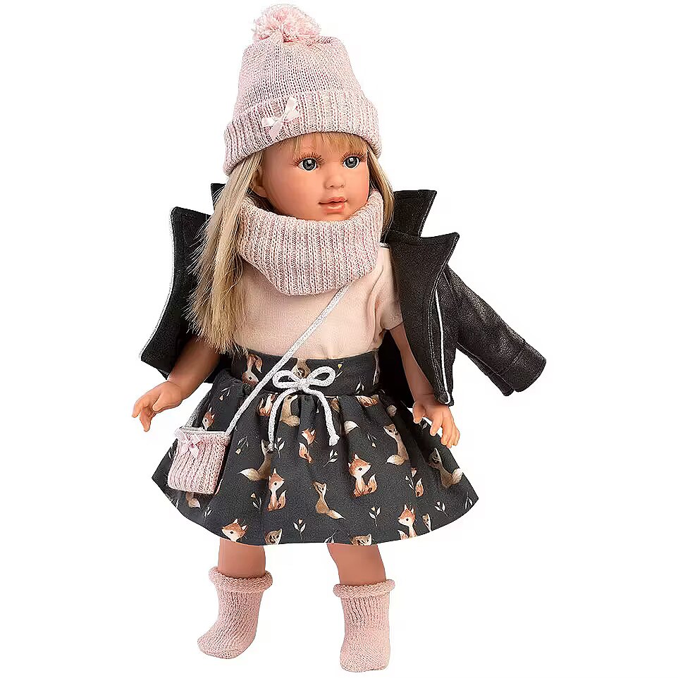 Description - Lalka Carla 40 cm W naszej manufakturze wierzymy, że zabawa jest najlepszą nauką. Dlatego też z wielką miłością tworzymy kultowe lalki Llorens, w 100% ręcznie wykonane, o niepowtarzalnych wzorach. Stosowane przez nas tkaniny pochodzą od renomowanych marek odzieży dziecięcej. Wszystkie lalki Llorens są zgodne z europejskimi przepisami dotyczącymi bezpieczeństwa dzieci, co gwarantuje, że Twoje dzieci będą się bawić w możliwie najbezpieczniejszy sposób. Carla mierząca 40 cm posiada niebieskie oczy, długie rzęsy i piękną, bujną fryzurę. Carla ubrana jest w sukienkę w liski, czarną ramoneskę, buty, komin oraz czapkę. Stylizację dopełnia słodka torebka. Prawdziwy raj dla małych fashionistek. Jej rączki, nóżki i główka zostały wykonane z przyjemnego w dotyku winylu a brzuszek z materiału, wypełniony miękką wyściółką. Lalka została zapakowana w ozdobny karton. Kochamy hiszpańskie lalki Llorens!