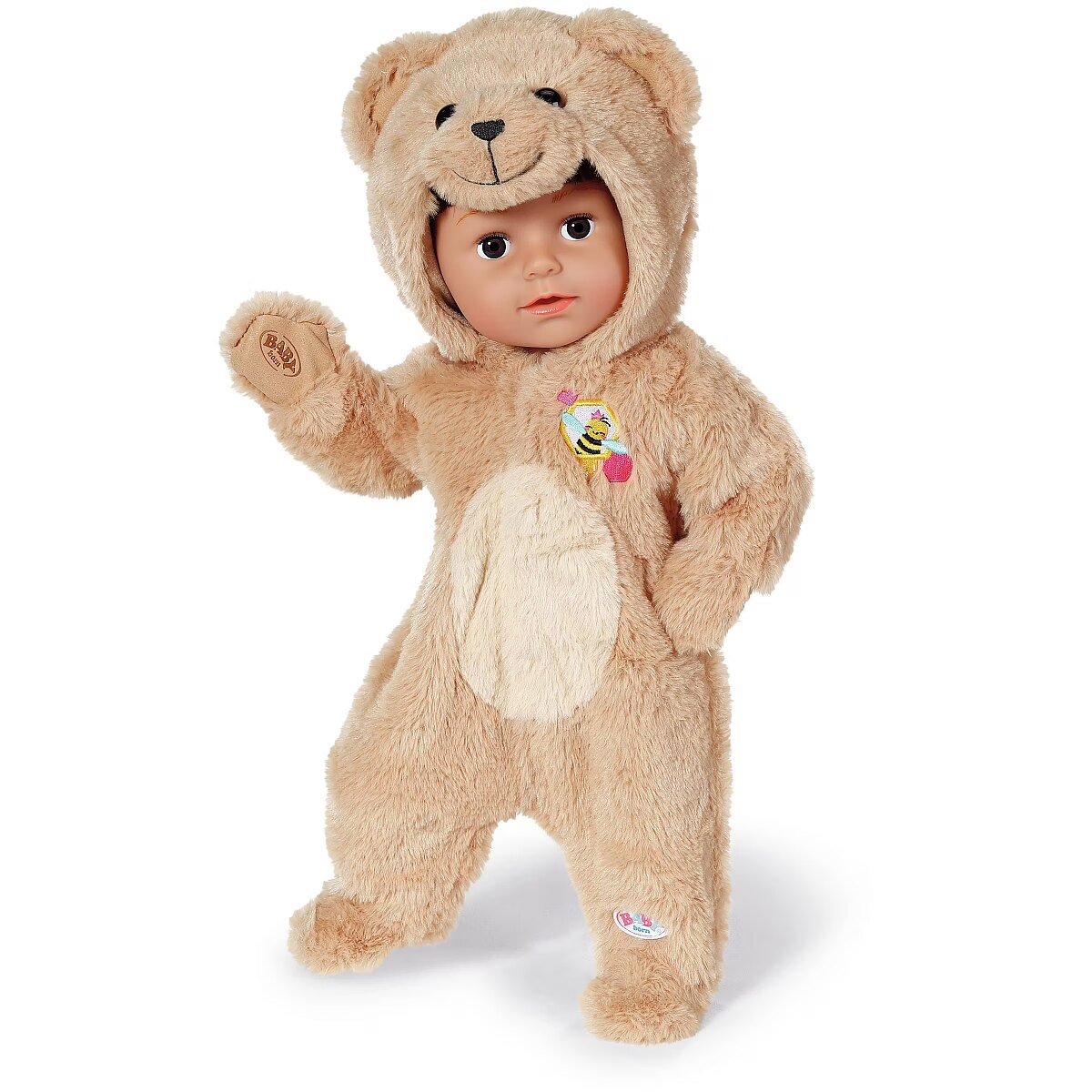 Description - Oops, is that the BABY born bear? No, it's BABY born. But with her bear onesie, she looks just like her best friend. In the suit made of cosy material with a bear hood, she can romp through the forest with Teddy and explore his bear world together with him. Cosy bear onesie for BABY Born The material is as cuddly as the BABY born bear itself. High-quality accessories for the BABY born branded play doll. For extended, varied and long-lasting playtime fun.