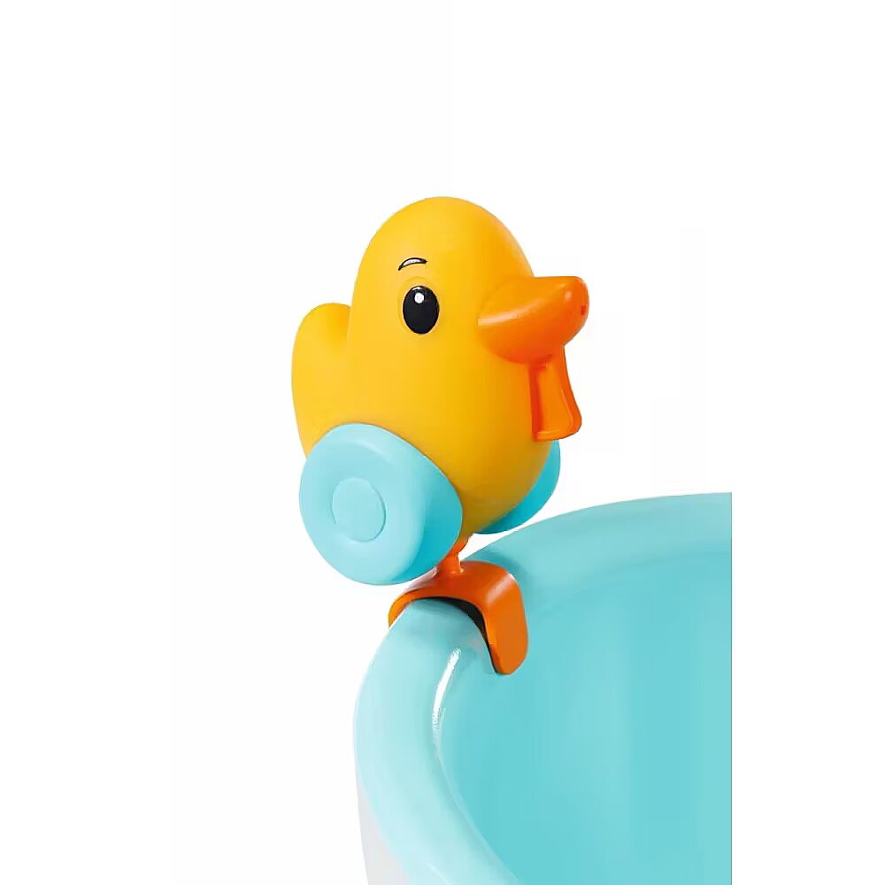 Description - Take aim, fire, aaaand GOT YOU! Brother is really wet now. A bath duck like this is just perfect for water fights. You can position it anywhere along the edge of the bathtub, just like the heart-shaped pillow. The tub is water-blue on the inside and white with an embedded wave shape on the outside. If you press the light switch next to the shower, the outer shell of the bathtub lights up in alternating colours. The shower button activates the pink and white shower. If the bathtub is empty, you can hear splashing and the typical watery sounds. If the bathtub was filled with water beforehand, the water now runs through the shower head, which can be tilted towards the bathtub so that no water drips outside the tub. You can also take out the hose in order to give BABY born a good wash or to soak Brother a little bit more. High-quality accessories for the BABY born branded doll. For enhanced, diverse and long-lasting fun through play. Suitable for dolls in the sizes 36 cm and 43 cm. Requires batteries (not included).
