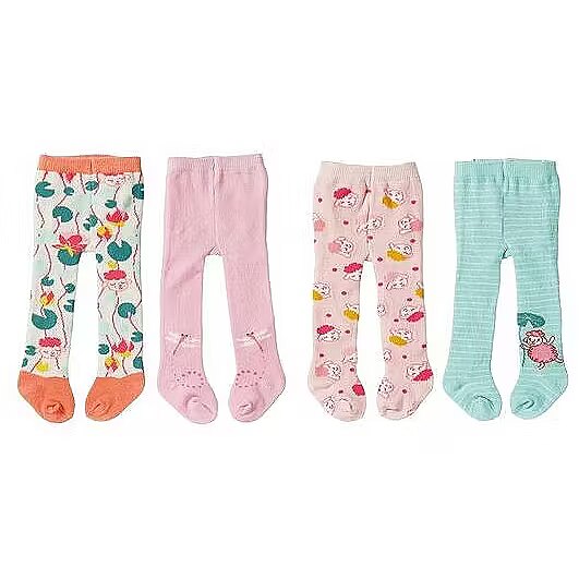 Description - Urocze rajstopy Baby Annabell pasują do każdej sukienki - i oczywiście można je również nosić samodzielnie. Ważki zdobią różowe rajstopy. Druga para rajstop w pasującym zestawie ozdobiona jest liliami wodnymi. Drugi zestaw ma parę rajstop w kolorze miętowym z zabawnymi białymi paskami i lilią wodną na dole, a także jasne morelowe rajstopy z ulubionymi owcami Baby Annabell. Różne wzory. Produkt wysyłany losowo, brak możliwości wyboru konkretnego modelu. Cena za 2-pak.